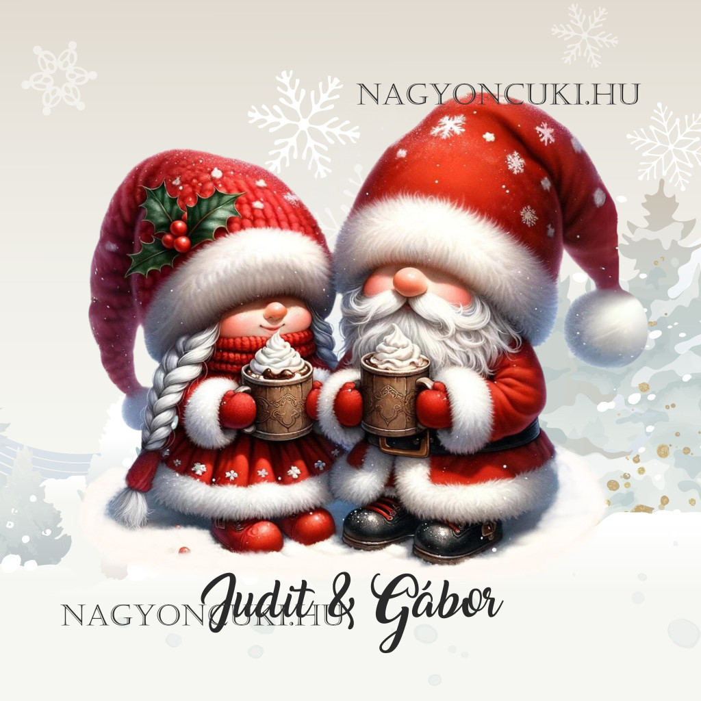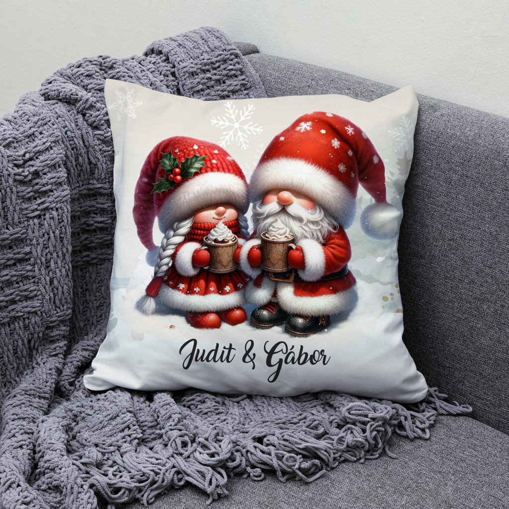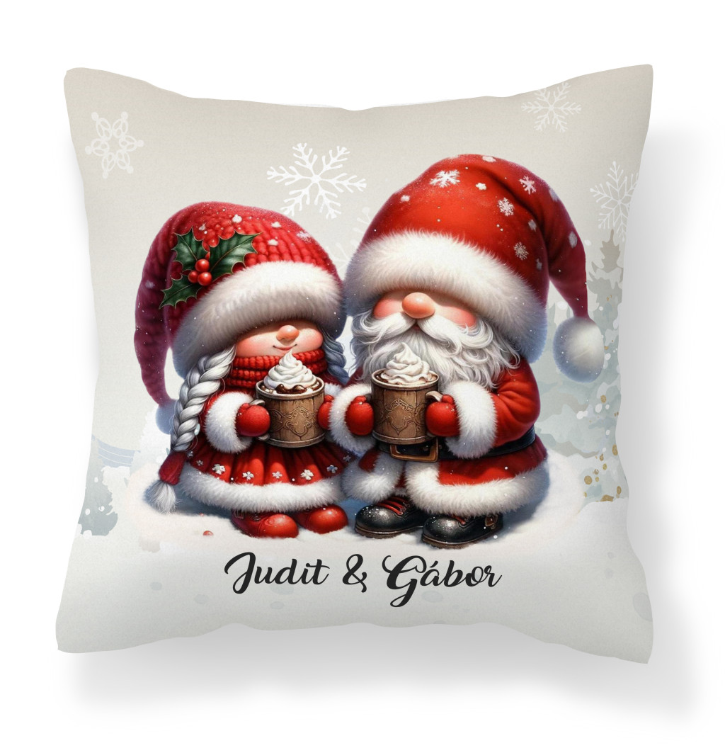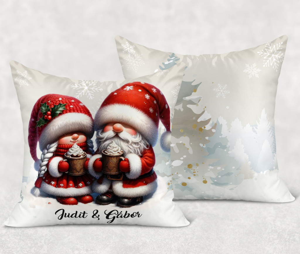 Névvel kérhető - Forró csokis karácsonyi manók mintás párna