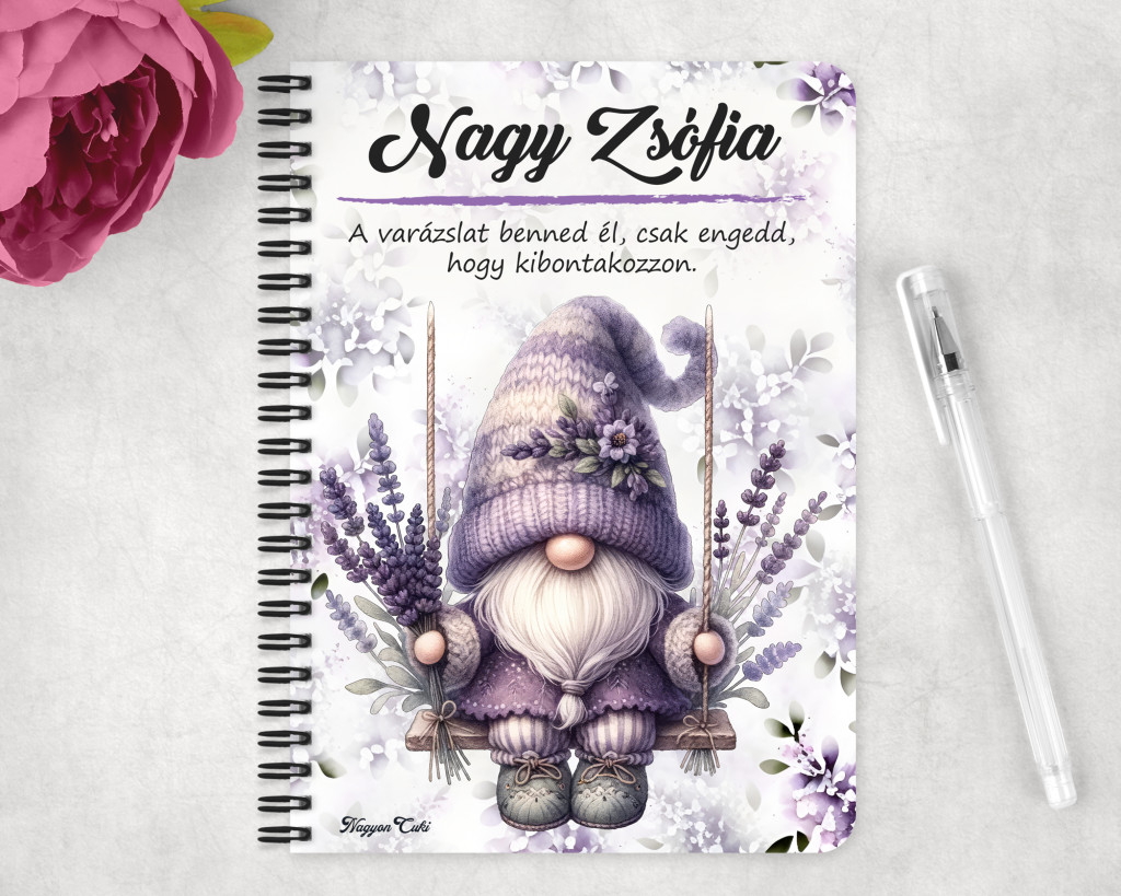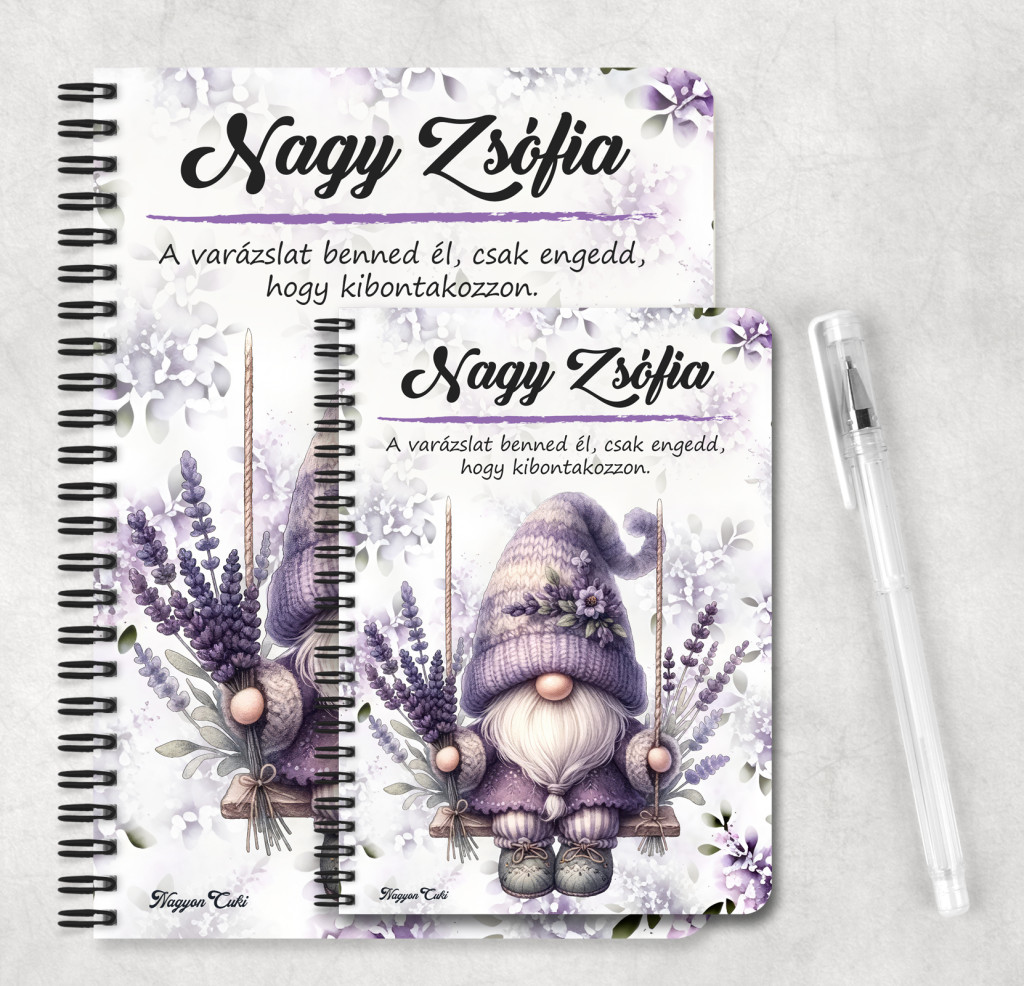 Rendeld meg most ezt a teljesen személyre szabható, egyedi manós füzetet, és vigyél egy csipetnyi levendulás nyugalmat a mindennapokba!
