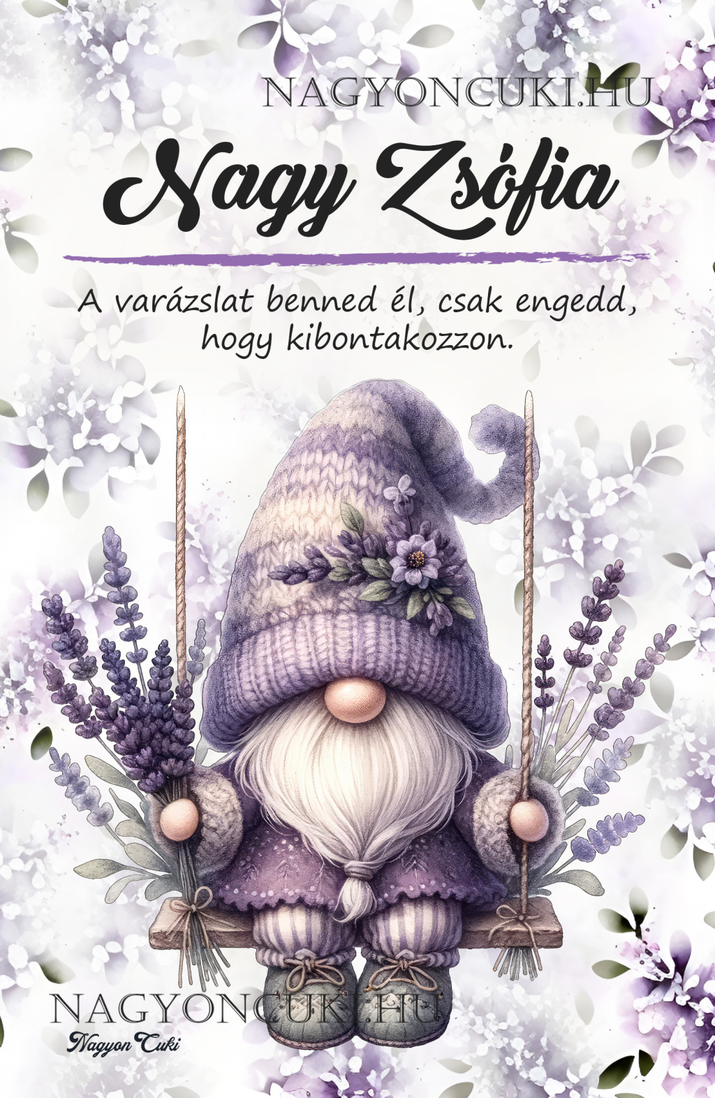 • Bájos Levendulás Dizájn: A megnyugtató lila szín és a cuki manó figura a béke és a természetesség érzetét kelti. Tökéletes ajándék a levendula szerelmeseinek.