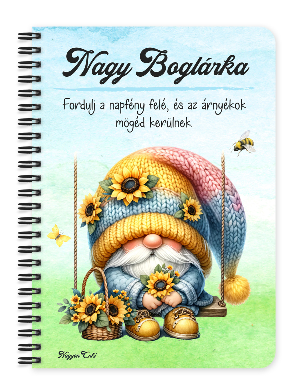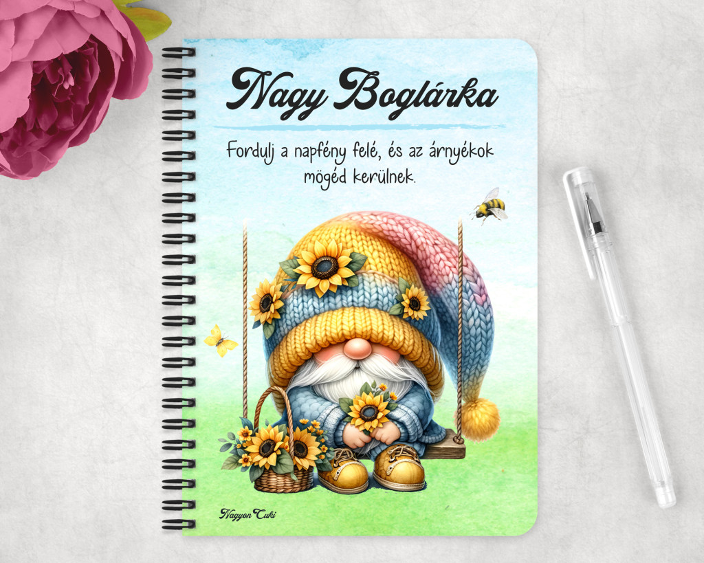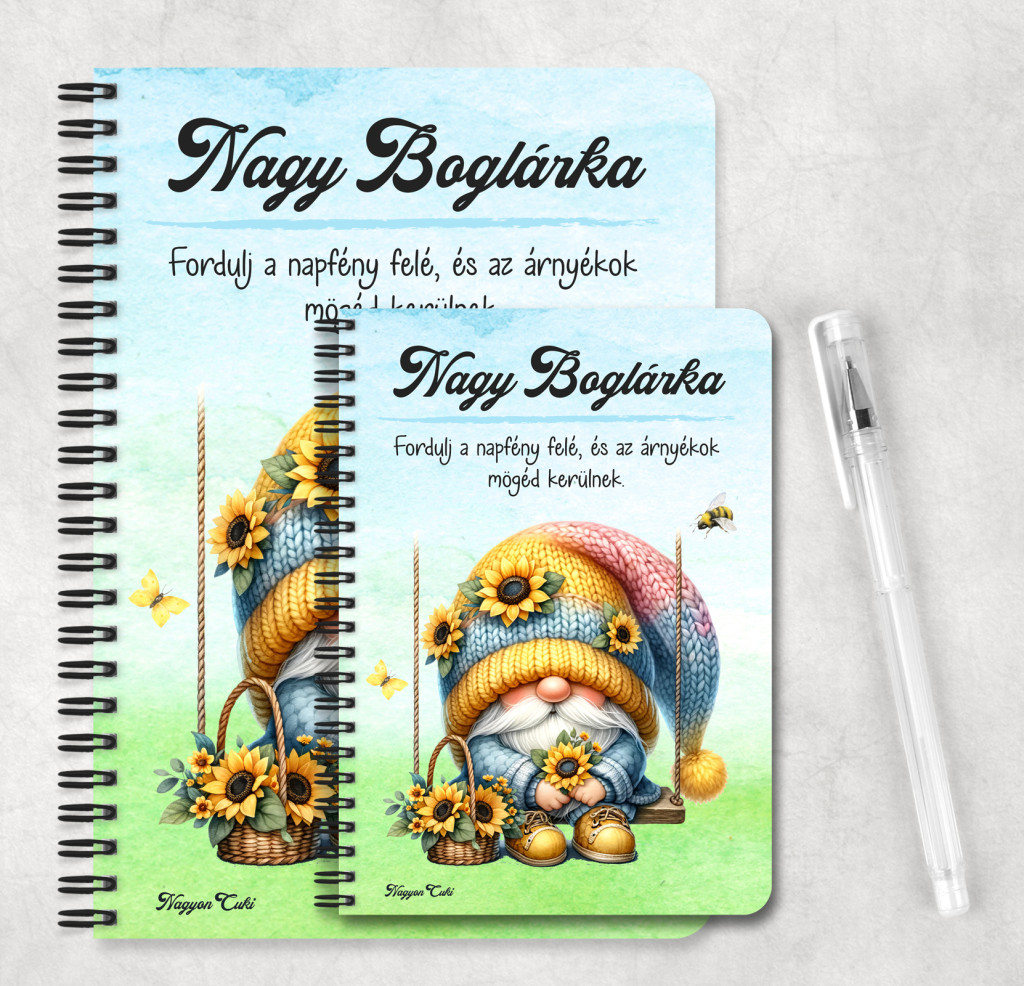 Névvel & Idézettel Kérhető Hintázó napraforgós manó mintás Füzet | Legjobb ajándék Nőknek | nagyoncuki.hu