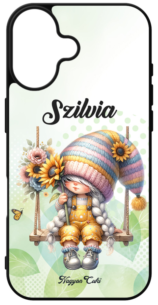 Névvel kérhető Hintázós napraforgós manó lány mintás iPhone szilikon telefontok | Ajándék ötletek Nőknek| nagyoncuki.hu