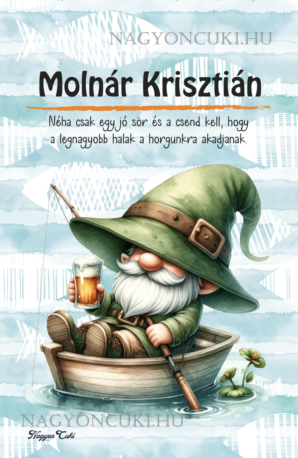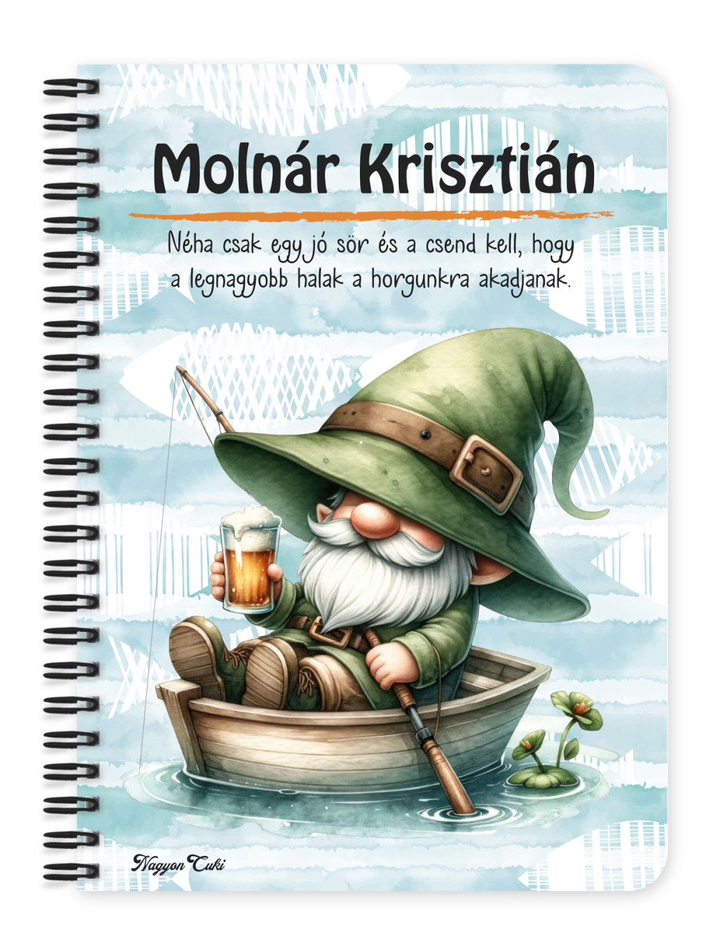 Névvel & Idézettel Kérhető Horgász manó és egy korsó sör mintás Füzet | Legjobb ajándék Horgászoknak | nagyoncuki.hu