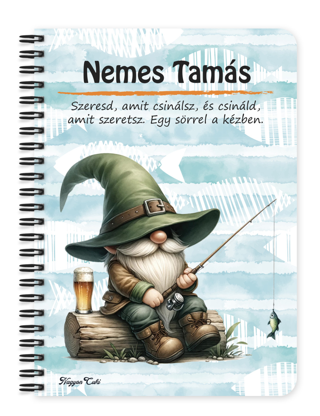 Névvel & Idézettel Kérhető Horgász manó és egy sörös kapás mintás Füzet | Legjobb ajándék Horgászoknak | nagyoncuki.hu