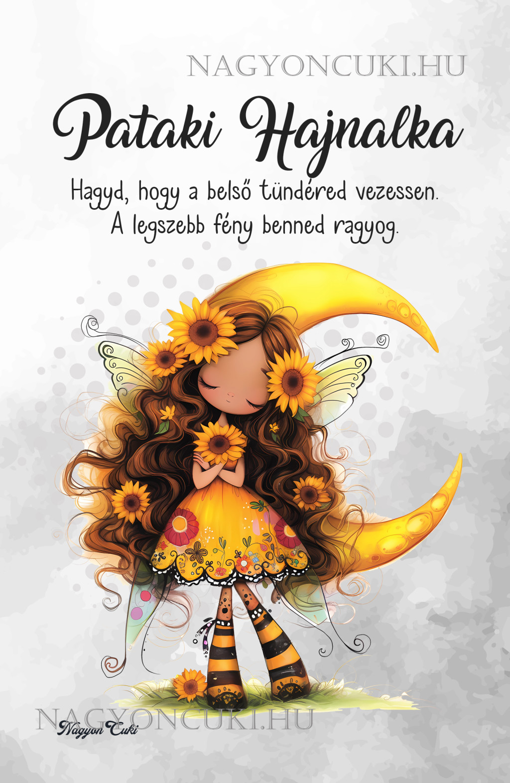 Ez a tündéres füzet a mesebeli békét, a képzelet szabadságát és a nyári örömök megélésének örömét ötvözi egy aranyos, félholdon üldögélő, napraforgós tündérlány figurájában. Ahogy a furik tündérlány elmerül a békés szemlélődésben, nyugalmat és pozitív energiákat sugároz. Akár naplóként, jegyzetfüzetként, receptkönyvként vagy ötletfüzetként használod, ez a tündéres mintás füzet tökéletes társ lesz minden pillanatban. A dizájn kedves és egyedi, tökéletes ajándék ötlet azoknak, akik szeretik a különleges és szívhez szóló meglepetéseket, és imádják a személyes ajándékokat  :)