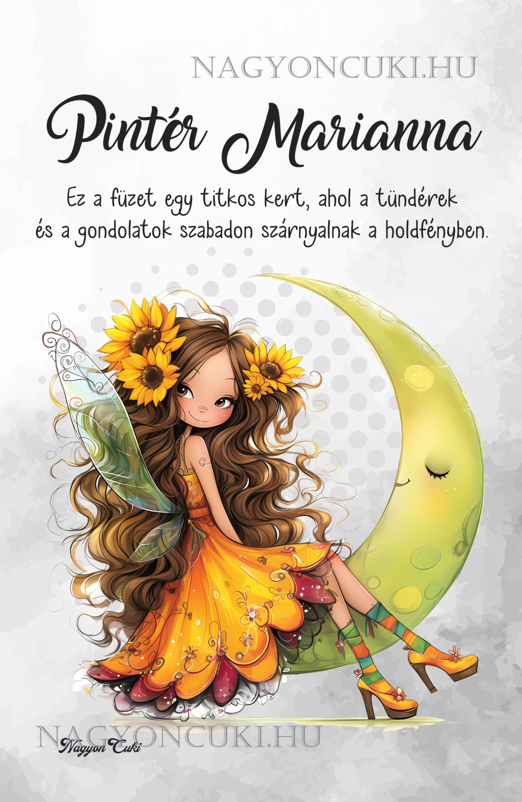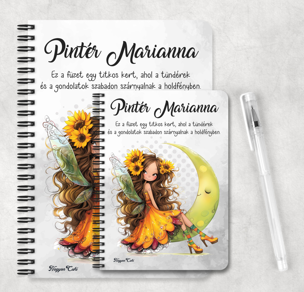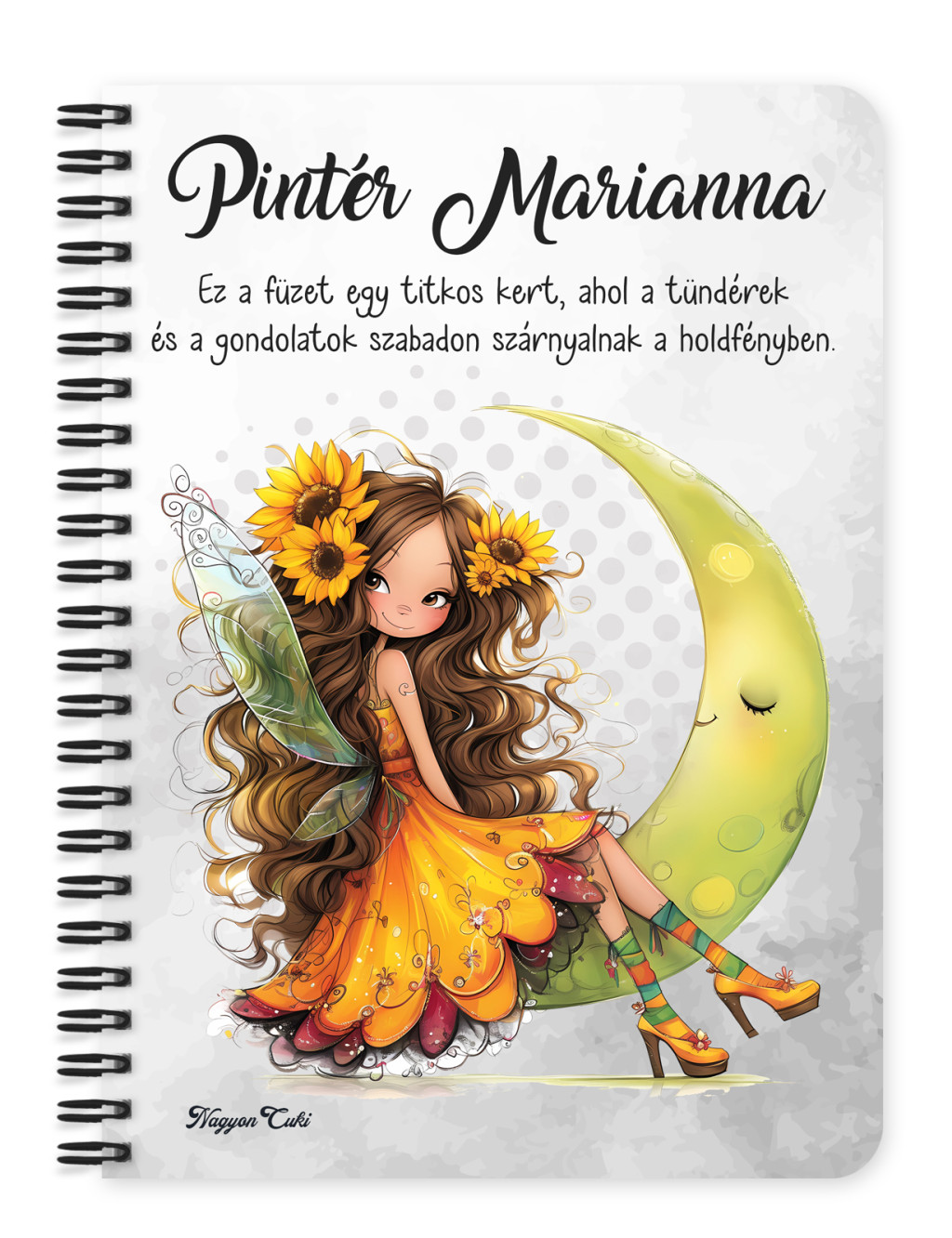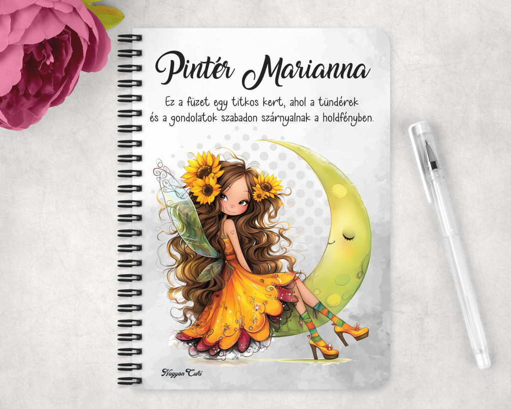 Névvel Kérhető - Huncut Napraforgós tündérlány és a Hold Füzet | Egyedi Ajándék Nőknek & Személyes Tündéres Napló | nagyoncuki.hu