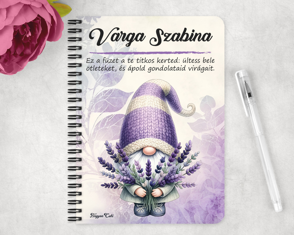 Személyre szabható - Illatos Levendulás manó mintás A6-os füzet