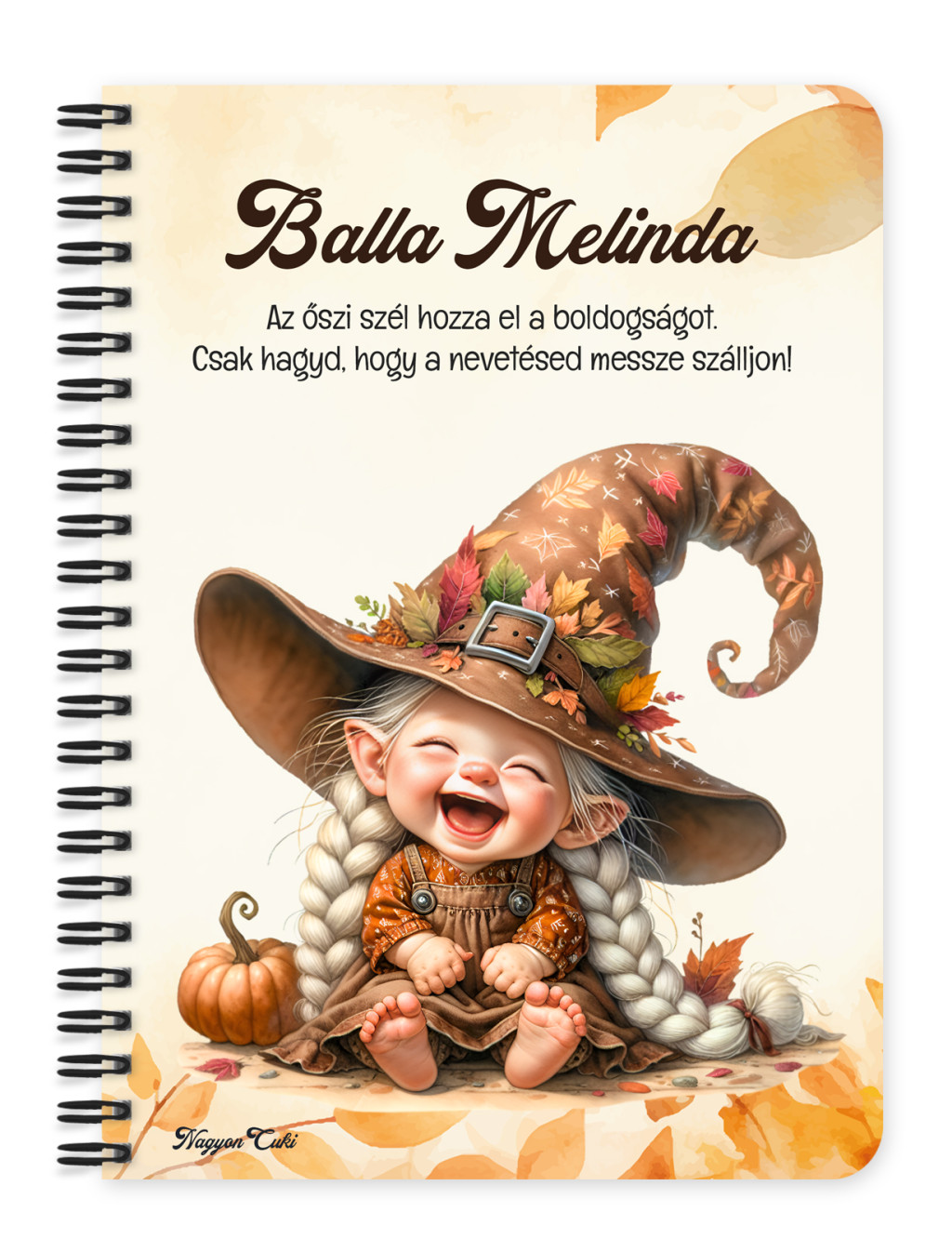Személyre szabható - Kacagó őszi manó lány mintás füzet mintás Füzet | Egyedi Ajándék Nőknek & Személyes Napló | nagyoncuki.hu