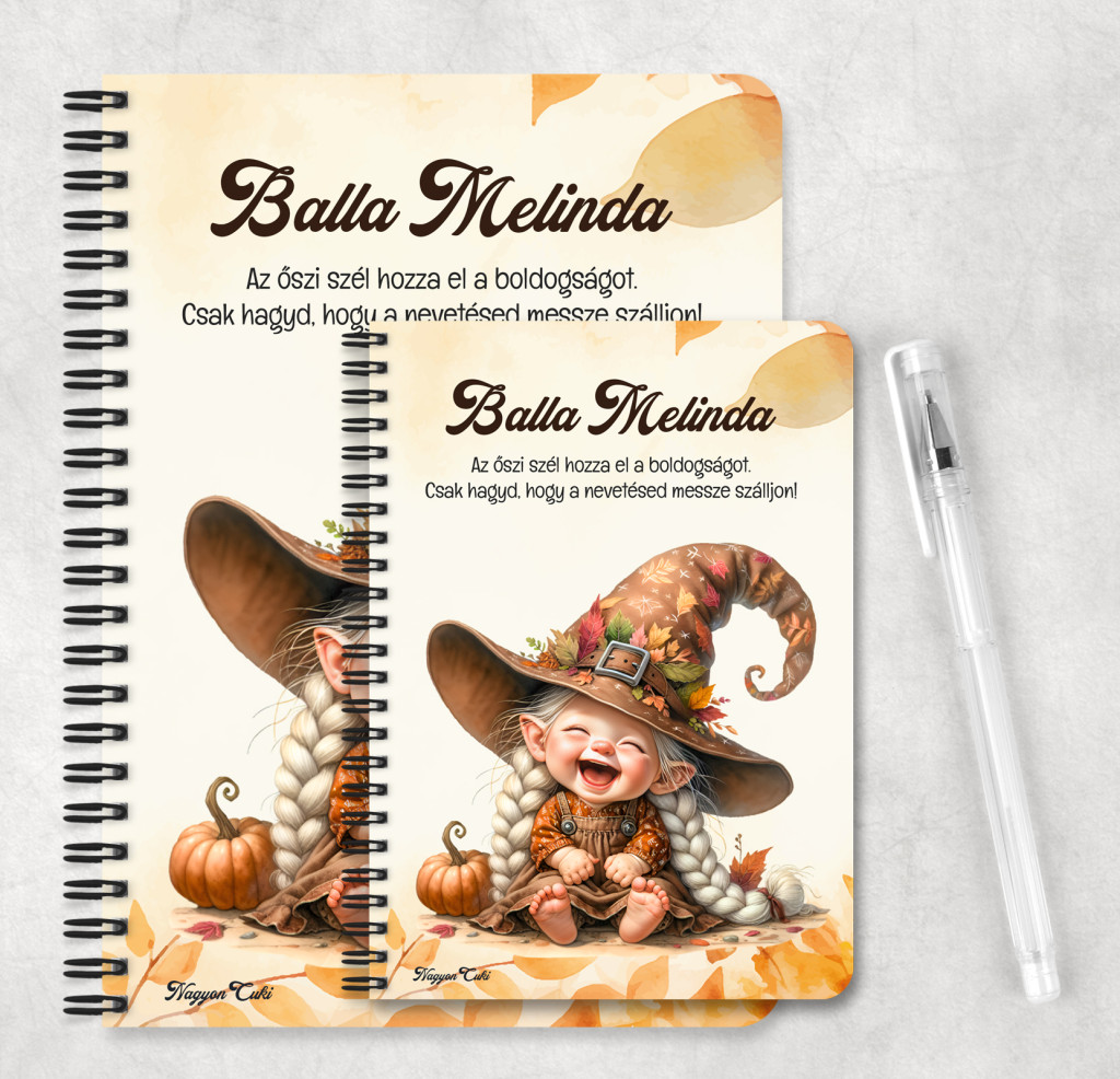 Személyre szabható - Kacagó őszi manó lány mintás A6-os füzet
