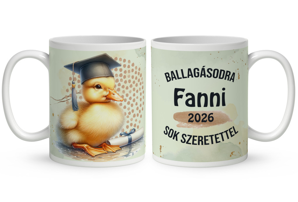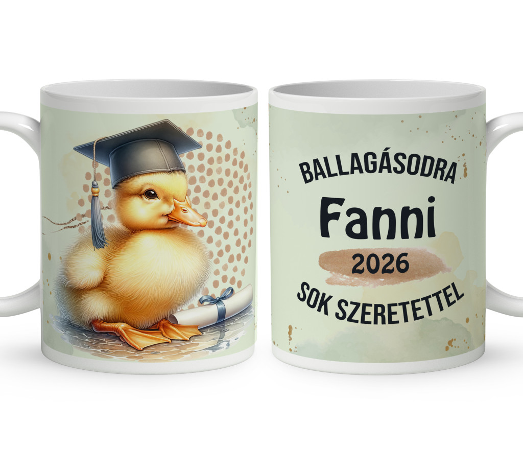 Névre szóló kacsás bögre 2026-os Ballagásra és Diplomaosztóra – Az elért sikerek legkedvesebb őrzője