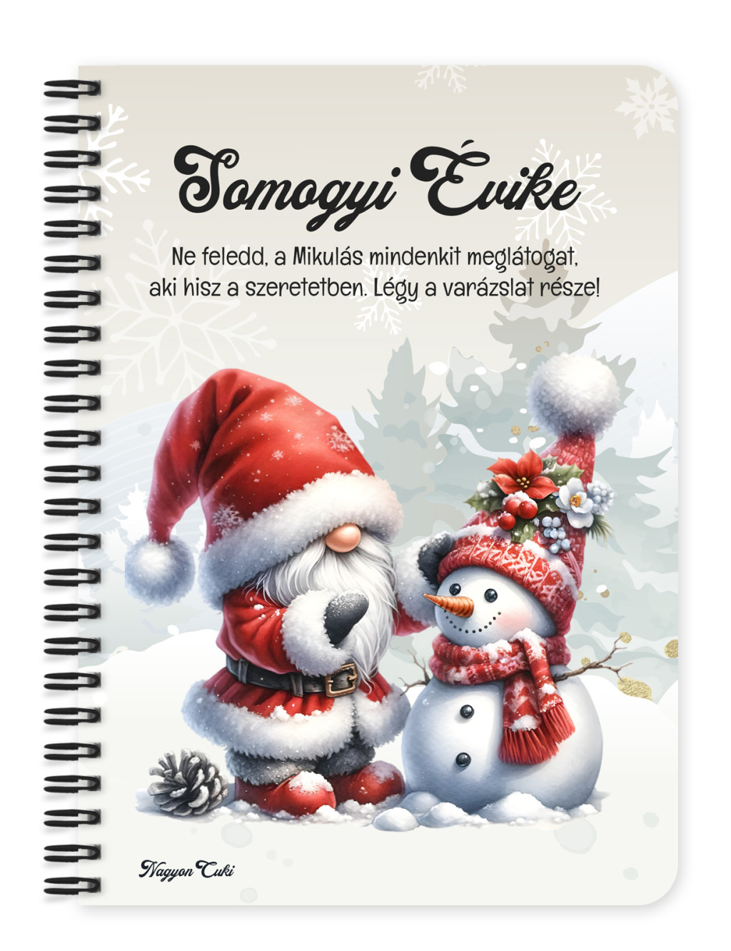 Képzeld el azt az ünnepi mosolyt és inspirációt a megajándékozott arcán, amikor egy olyan füzetet tart a kezében, amely nemcsak a karácsonyi terveit, receptjeit vagy fontos jegyzeteit őrzi, hanem a manók varázslatos karácsonyi világa iránti szeretetét is tükrözi!