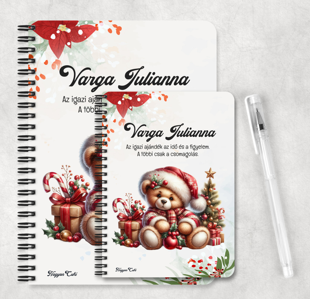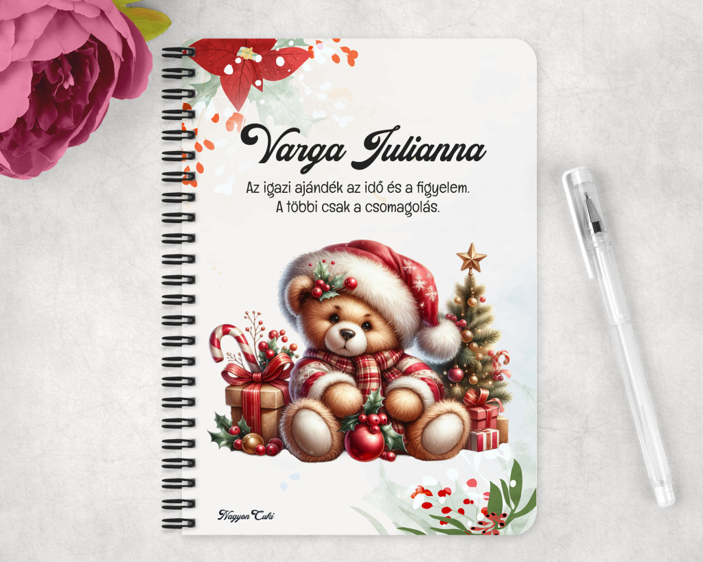 Névvel & Idézettel Kérhető Karácsonyi Teddy maci (ajándékok) mintás Füzet | Egyedi Karácsonyi Ajándék Nőknek & Személyes Napló, jegyzetfüzet | nagyoncuki.hu