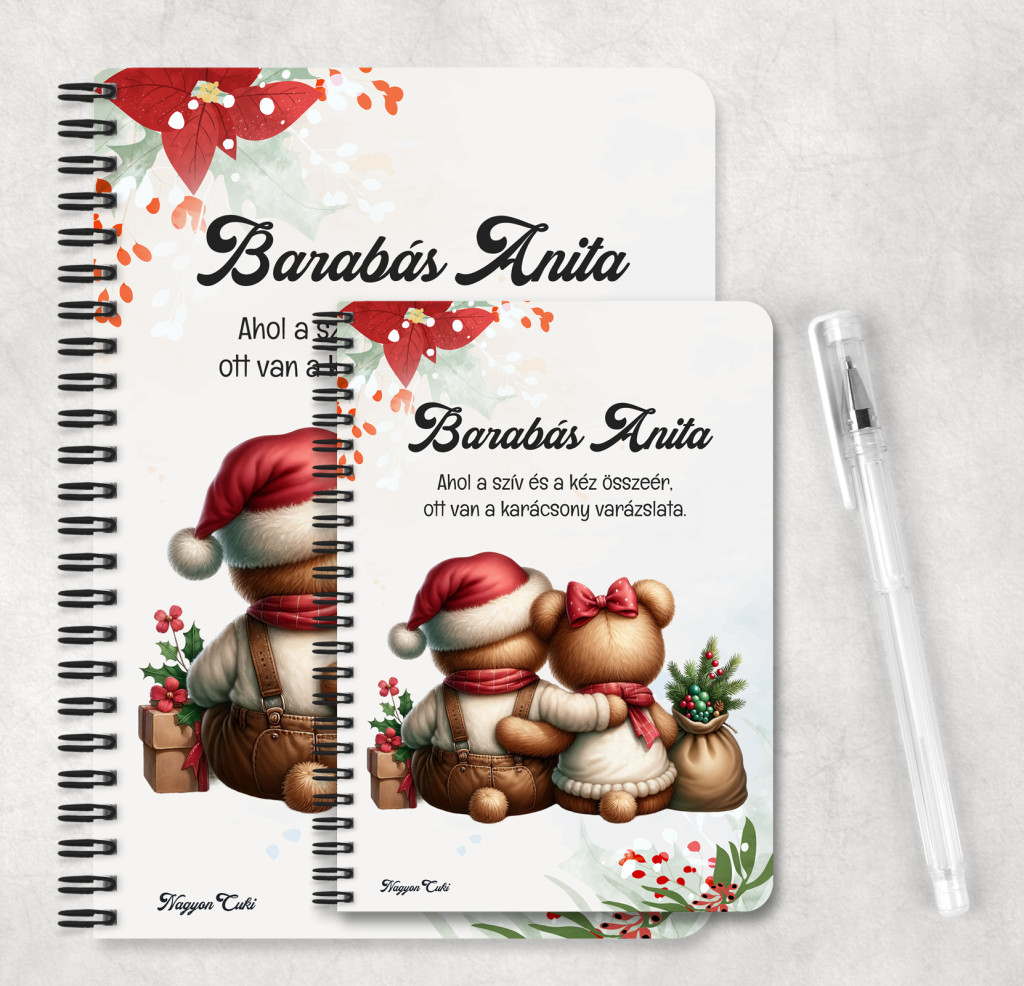 Képzeld el azt az ünnepi mosolyt és inspirációt a megajándékozott arcán, amikor egy olyan füzetet tart a kezében, amely nemcsak a karácsonyi terveit, receptjeit vagy fontos jegyzeteit őrzi, hanem a téli báj, a meghittség és a cuki macik szeretete iránti rajongását is tükrözi!