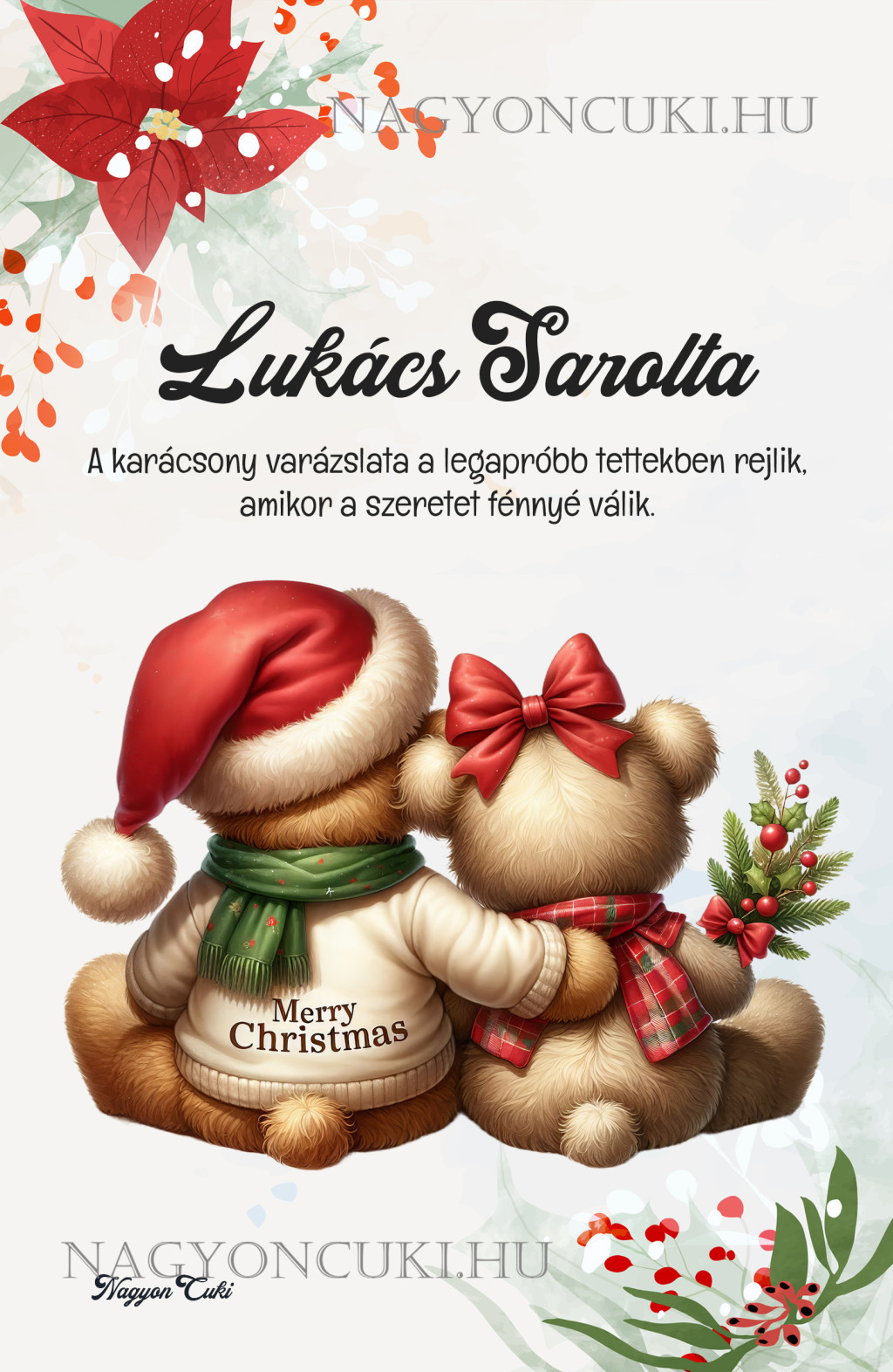 Ha elvarázsolt ez a tündéri dizájn, és tetszenek a személyre szabható ajándék ötleteink, nézd meg a többi aranyos karácsonyi cukiságunkat is a nagyoncuki.hu-n!