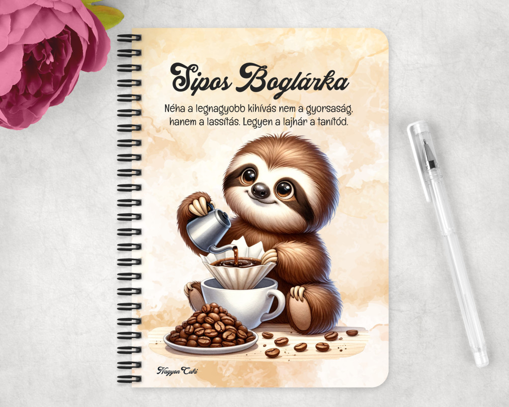 Névvel & Idézettel Kérhető Kávés lajhár és a filteres kávé mintás Füzet | Legjobb ajándék Nőknek & Személyes napló| nagyoncuki.hu