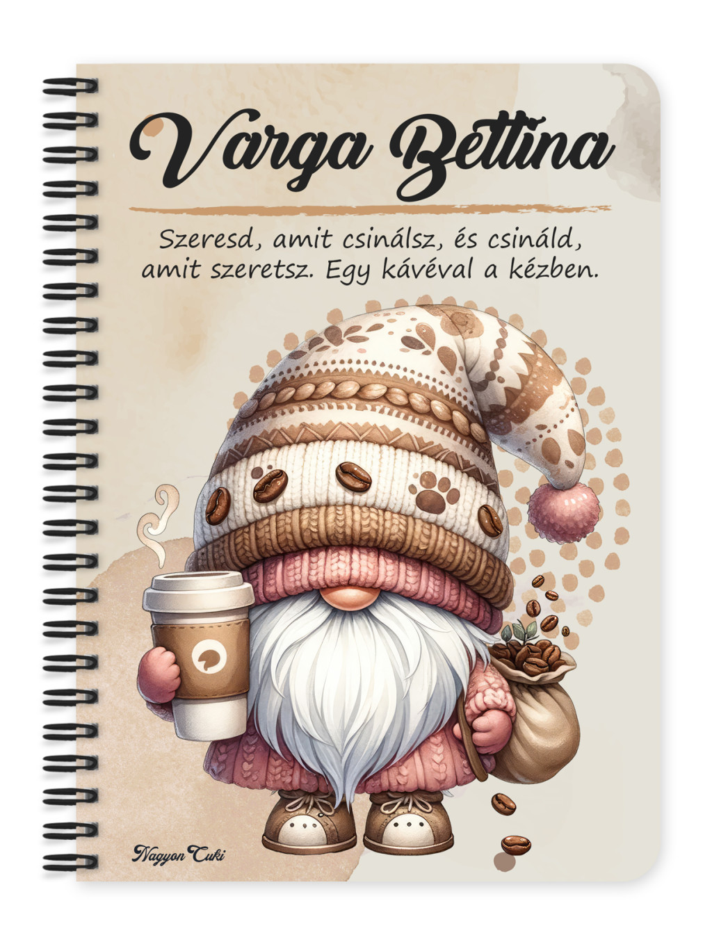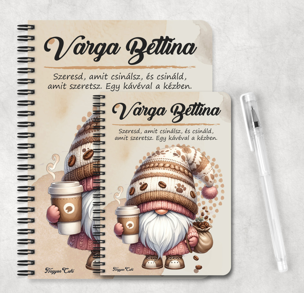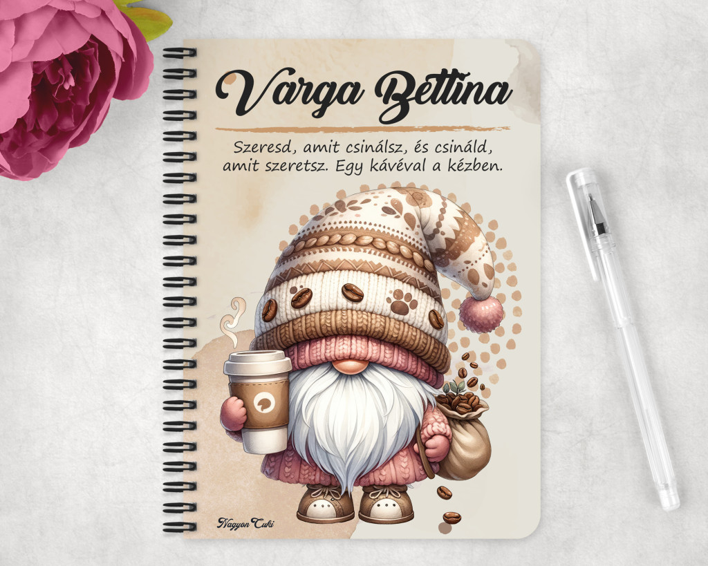 Névvel & Idézettel Kérhető - Kávés manó cókmókos Mintás Füzet | Egyedi Ajándék Kávéimádóknak & Személyre Szabható Manós Füzet | nagyoncuki.hu
