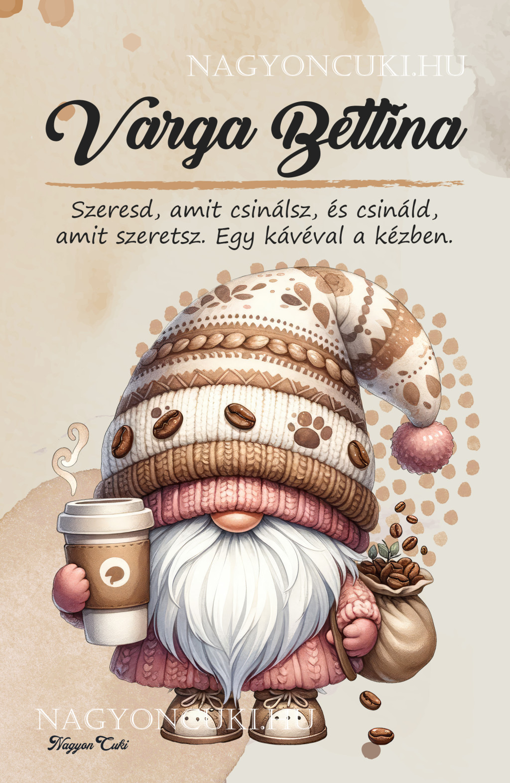 Ha elvarázsolt a cuki manók gondoskodó világa, és tetszenek a személyre szabható ajándék ötleteink, nézd meg a többi aranyos manó dizájnnal készült termékünket is a "Cuki Manó" Kollekcióban a nagyoncuki.hu-n! Fedezz fel még több egyedi ajándékot kávéimádóknak és más, lélekemelő témájú személyre szabható csodát!