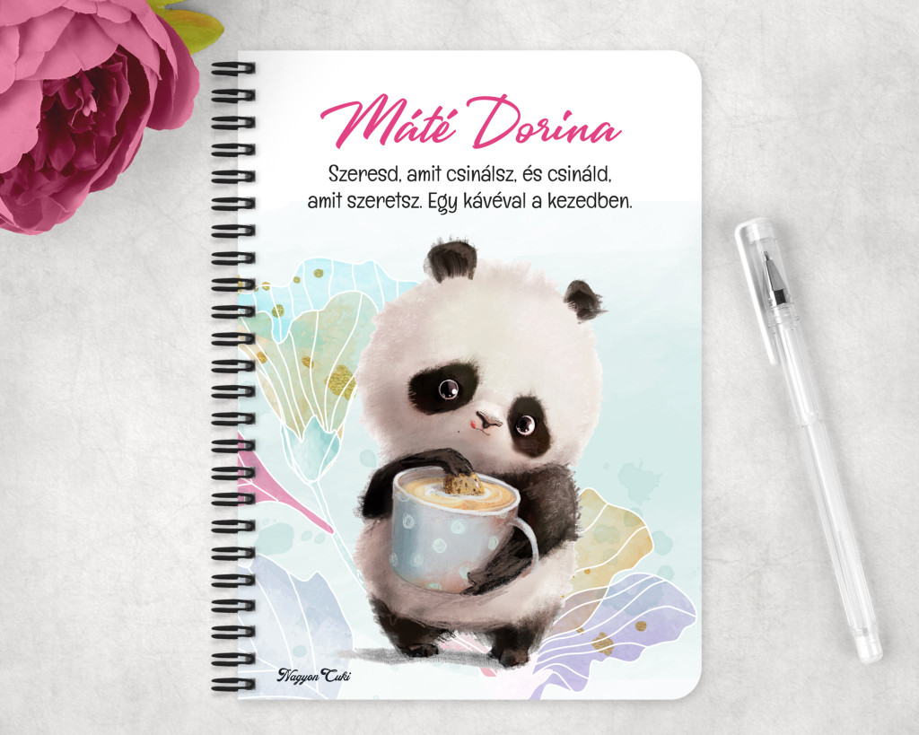 Rendeld meg most ezt a teljesen személyre szabható, egyedi panda füzetet, és vigyél egy ölelésnyi nyugalmat a mindennapokba...mert mindenkinek jár egy kis cukiság.