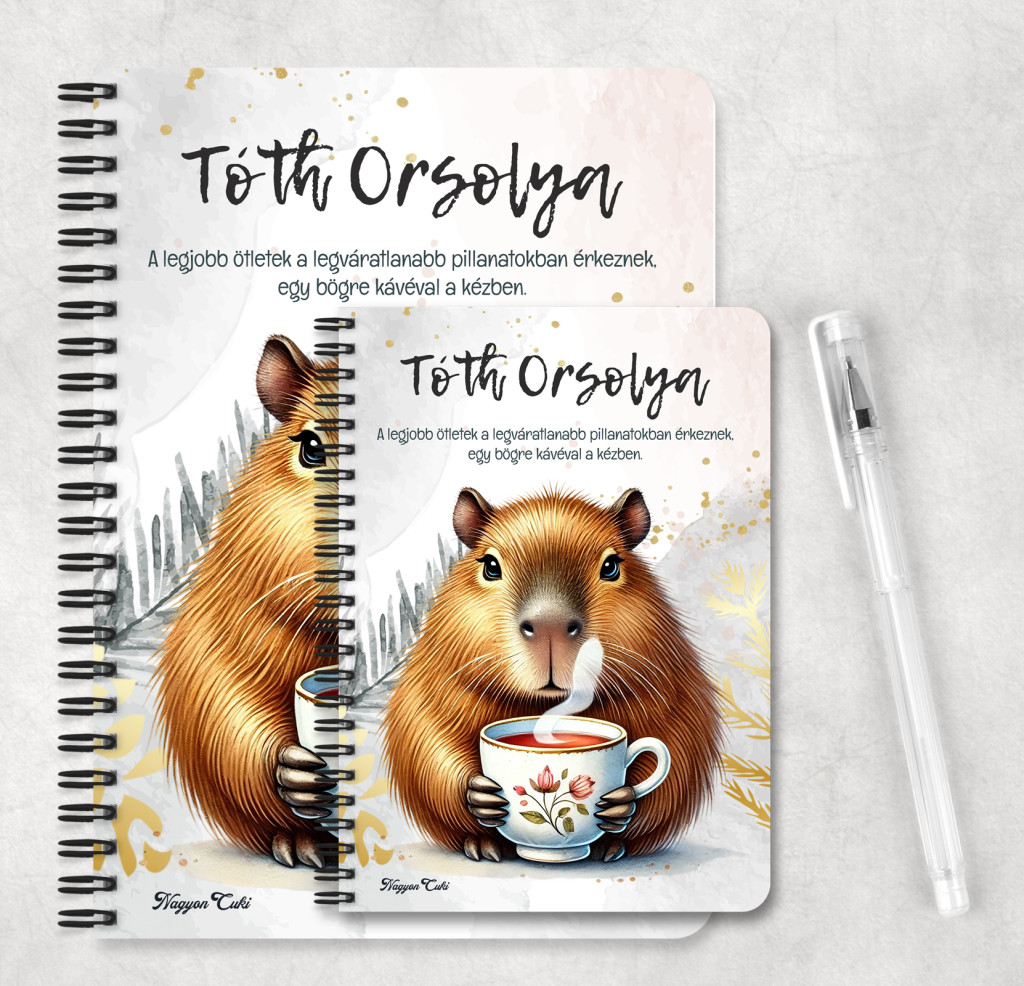 Rendeld meg most ezt az egyedi, névre capybar mintás füzetet, és vigyél egy kis plusz örömet és inspirációt a mindennapokba!...mert mindenkinek jár egy kis cukiság.