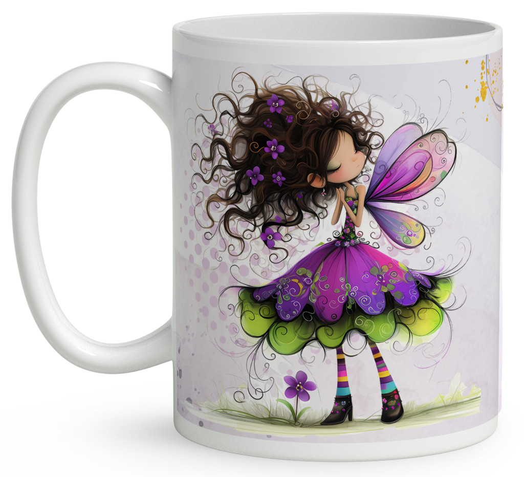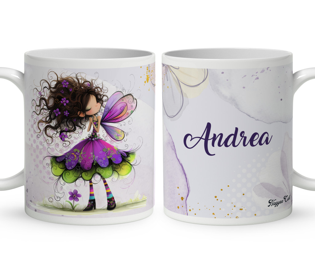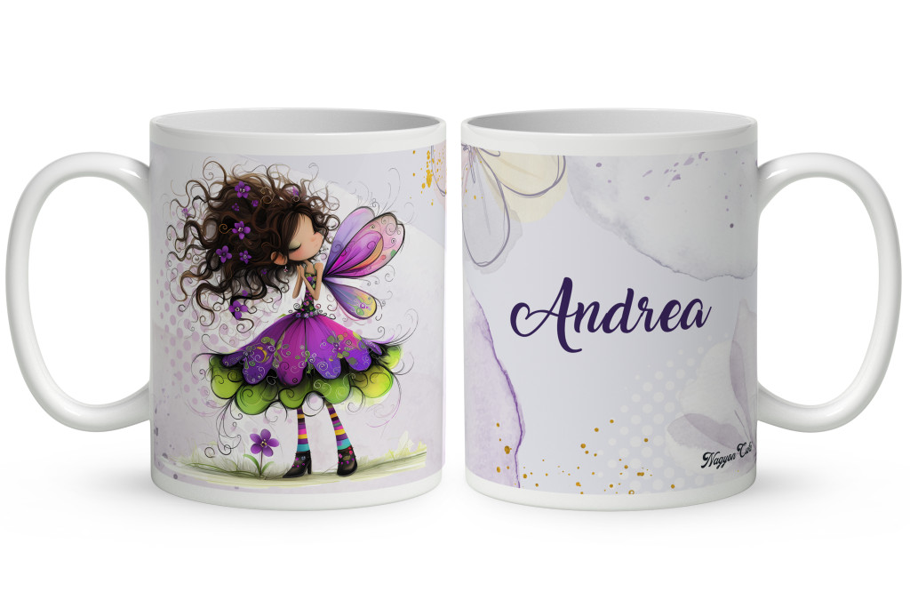 Névvel kérhető - Kedves ibolya virágos tündér mintás Bögre | Egyedi Ajándék Lányoknak és Nőknek | nagyoncuki.hu