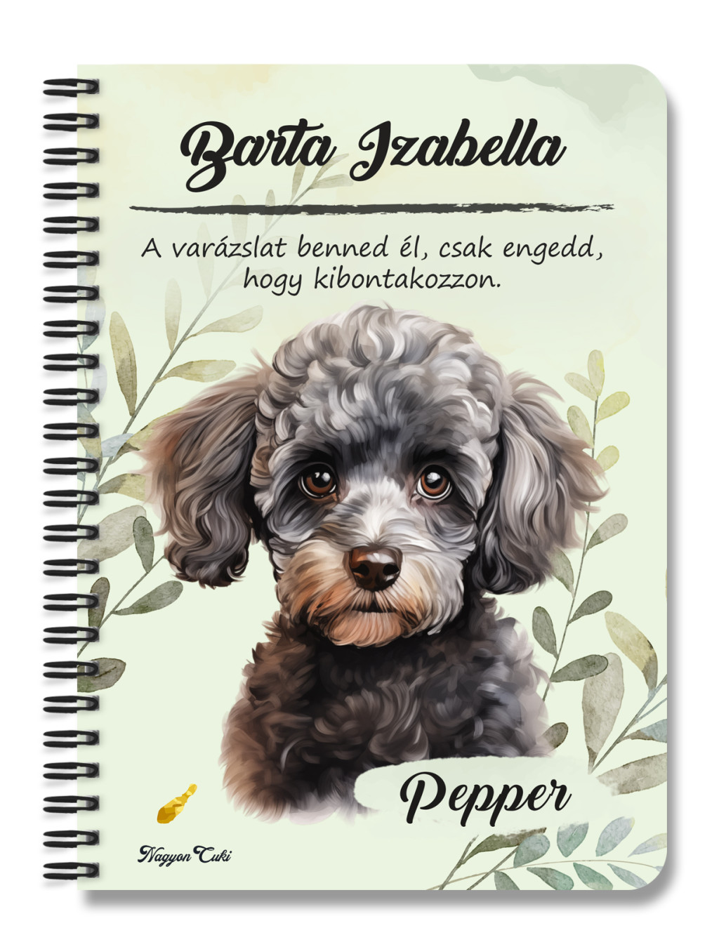 Névvel & Idézettel Kérhető - Kis szürke uszkár portré kutyás Füzet | Egyedi Ajándék Kutyásoknak & Személyre Szabható Kutyás Ajándék | nagyoncuki.h
