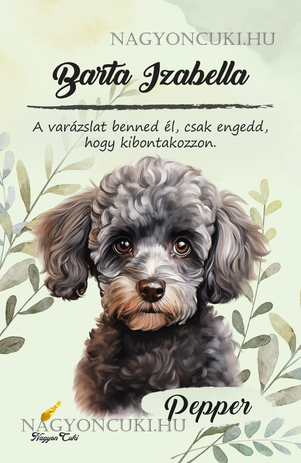 • Egyedi felirattal is kérhető: Ne felejtsd el megadni a kért nevet, kutyus nevet és/vagy az egyedi idézetet.
