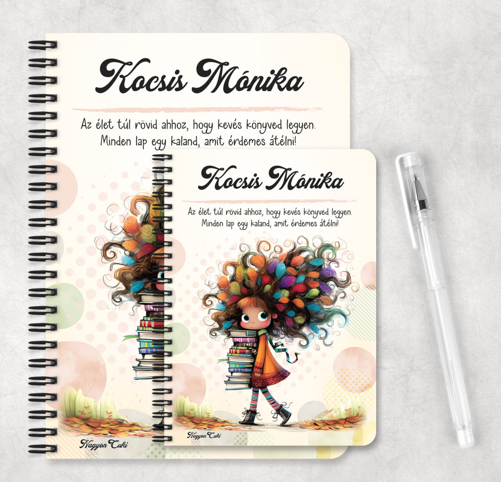 Személyre szabható - Könyves őszi Könyvmoly lány mintás A6-os füzet