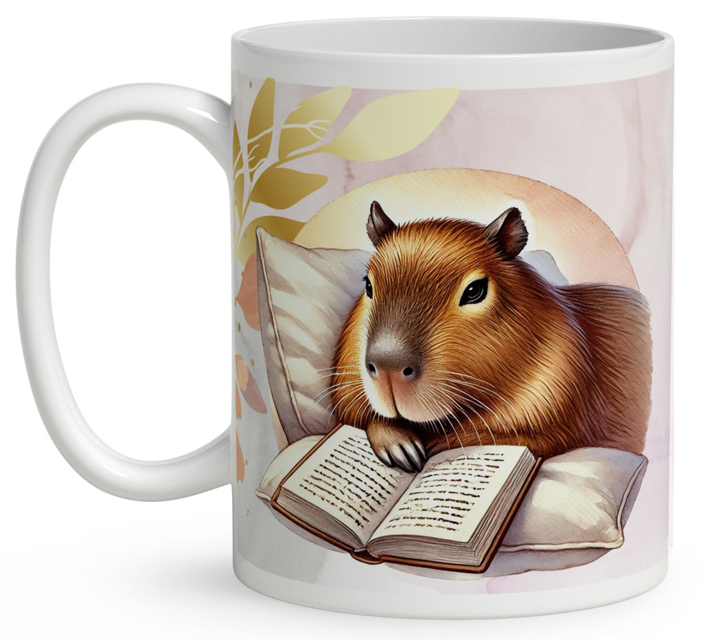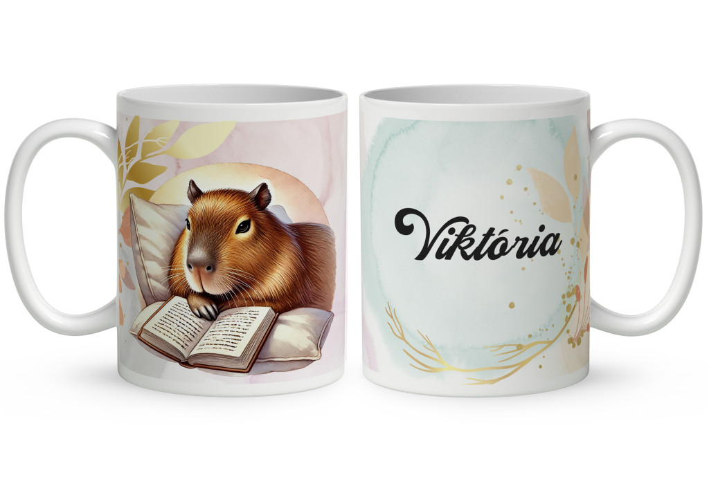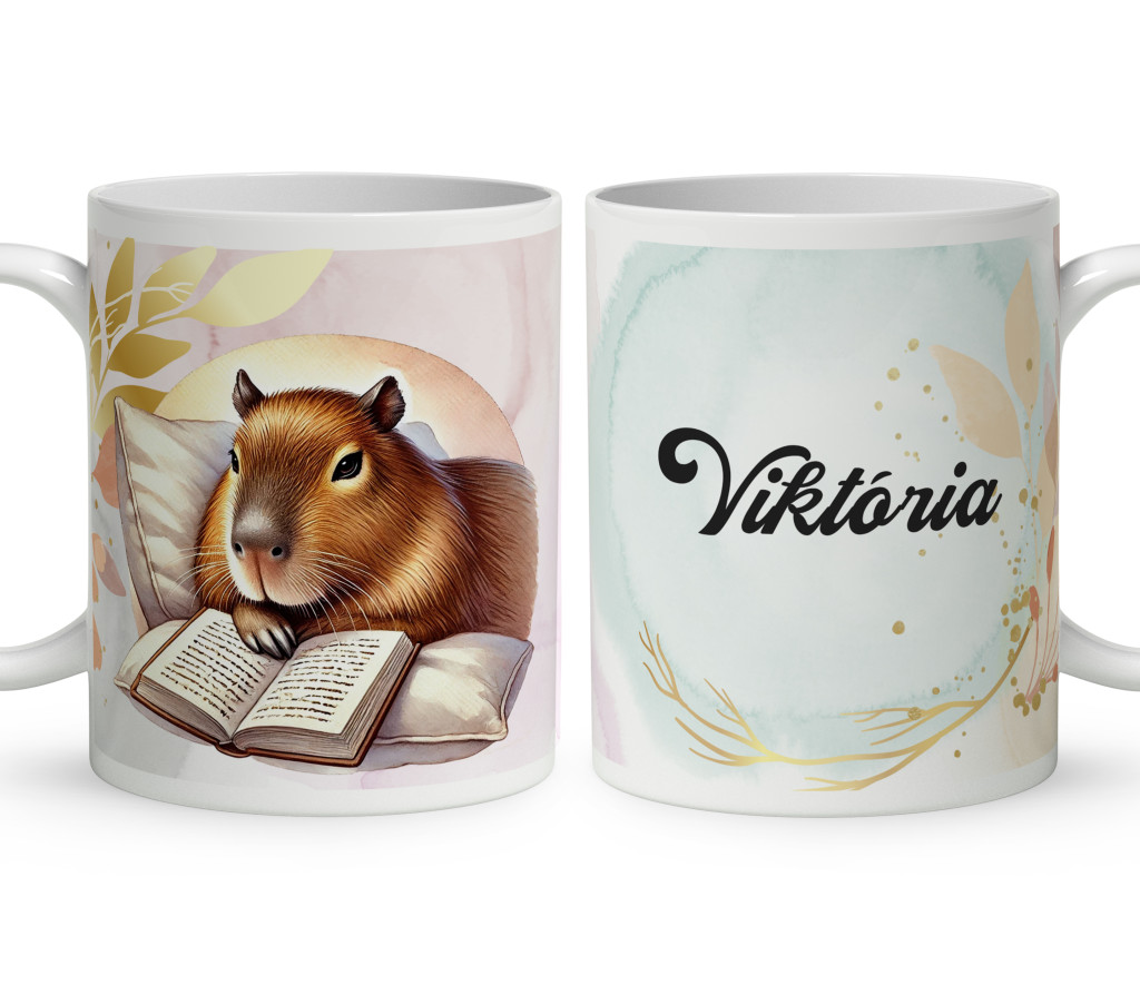 Névvel kérhető - Könyvmoly capybara mintás bögre | Ajándék ötlet Kapibara rajongóknak | nagyoncuki.hu
