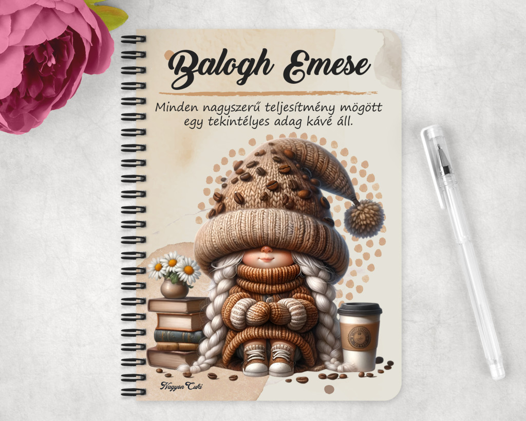 Névvel & Idézettel Kérhető - Könyvmoly kávés manó lány Mintás Füzet | Egyedi Ajándék Kávéimádóknak & Személyre Szabható Manós Füzet | nagyoncuki.hu