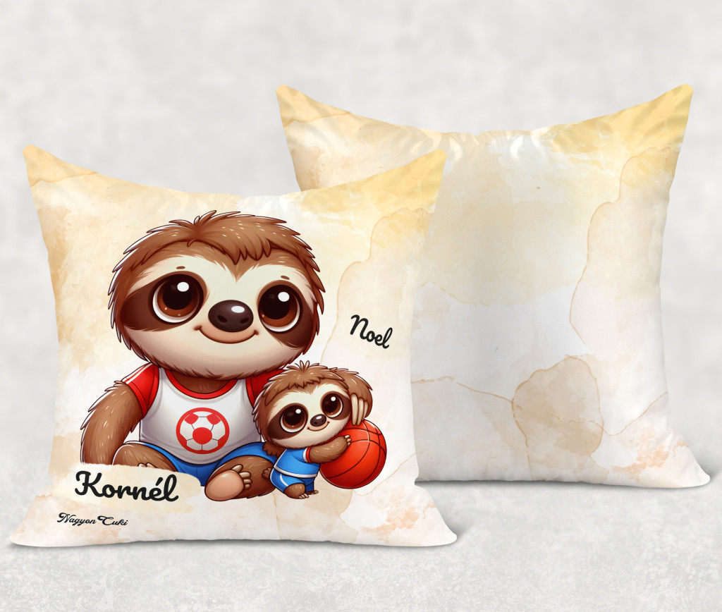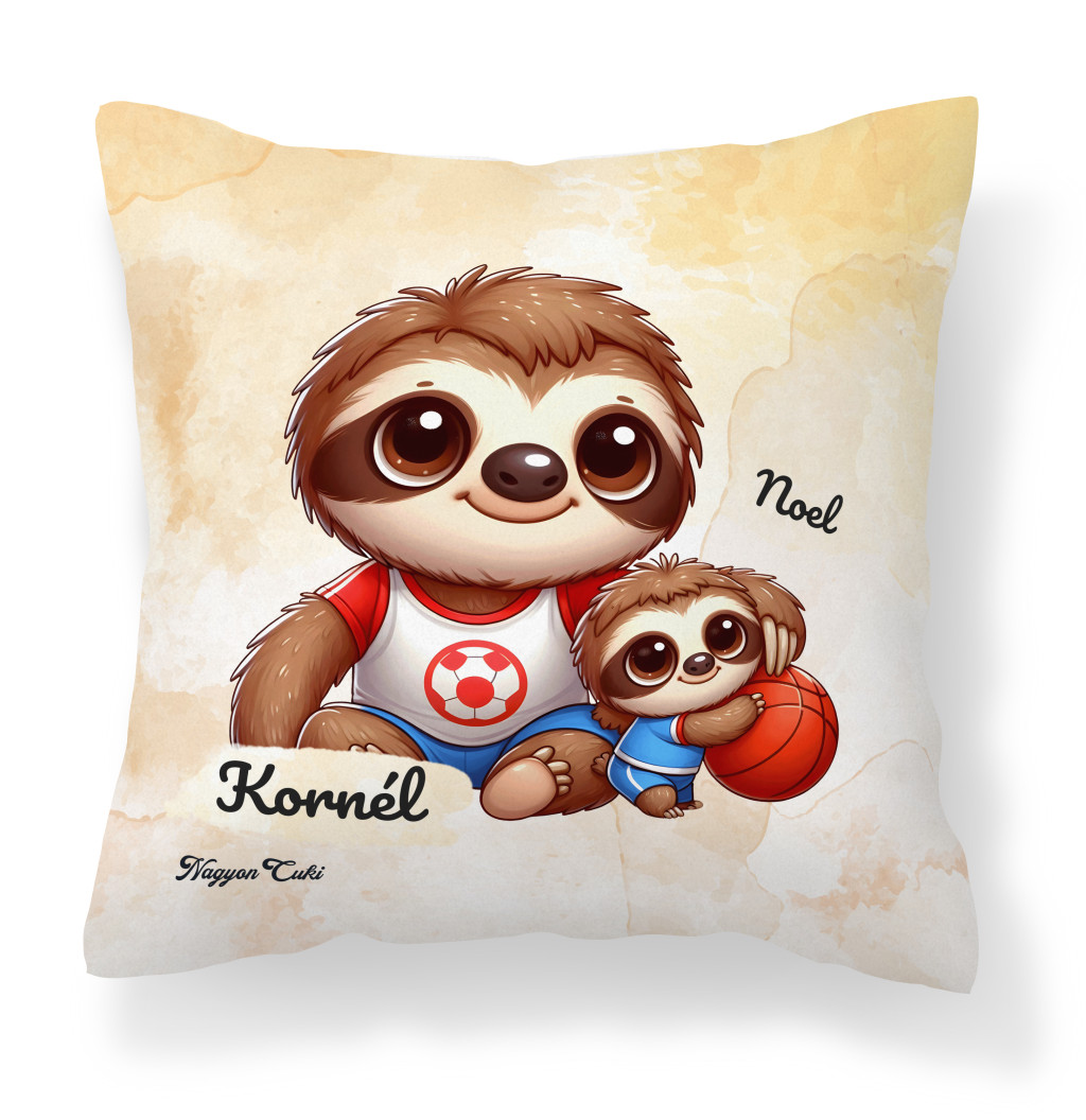 Névvel kérhető - Kosaras Cuki lajhár Apa és a gyerek Párna | A Gondoskodás és Pihenés Ajándéka | nagyoncuki.hu