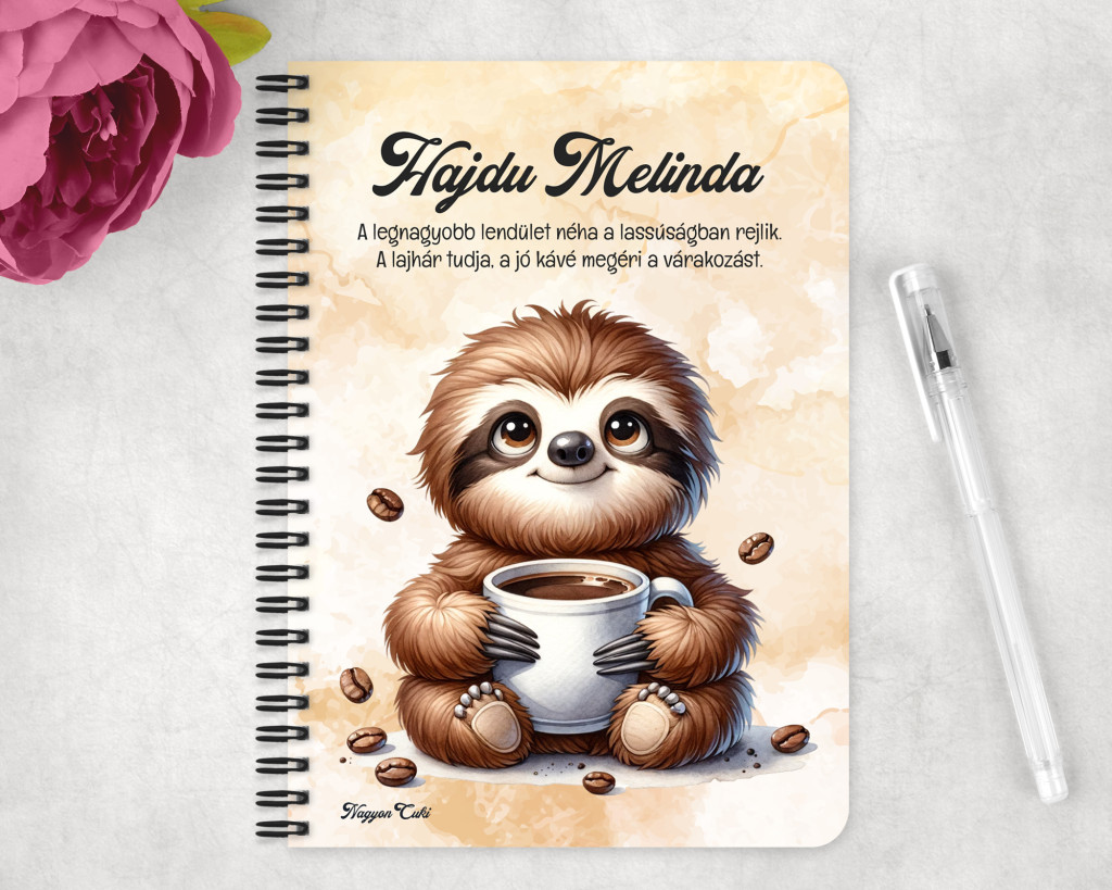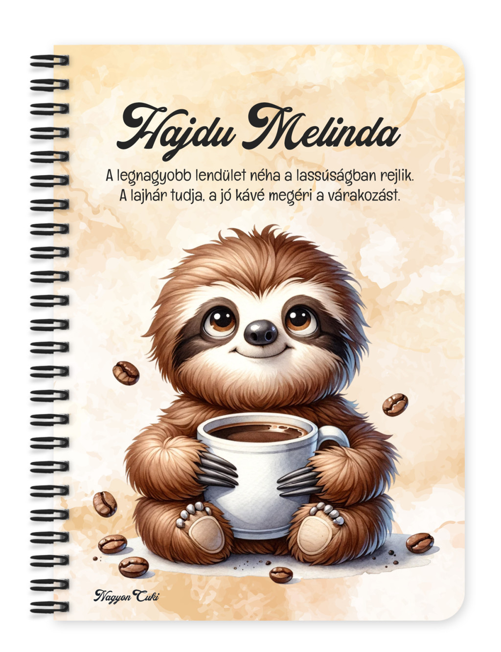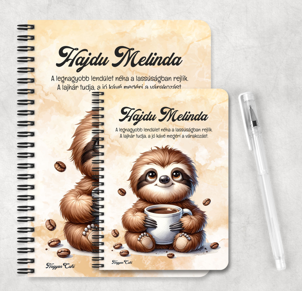 Névvel & Idézettel Kérhető Lazulós Kávés lajhár mintás Füzet | Legjobb ajándék Nőknek & Személyes napló| nagyoncuki.hu
