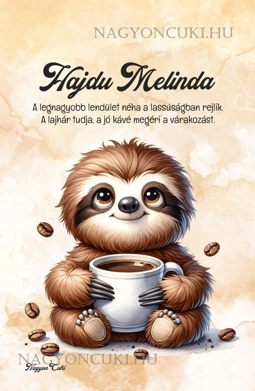 - Humoros és Imádnivaló Dizájn: A világ leglassabb állatának és a kávénak a párosa egy vicces és szerethető kombináció, ami garantáltan jókedvre derít.