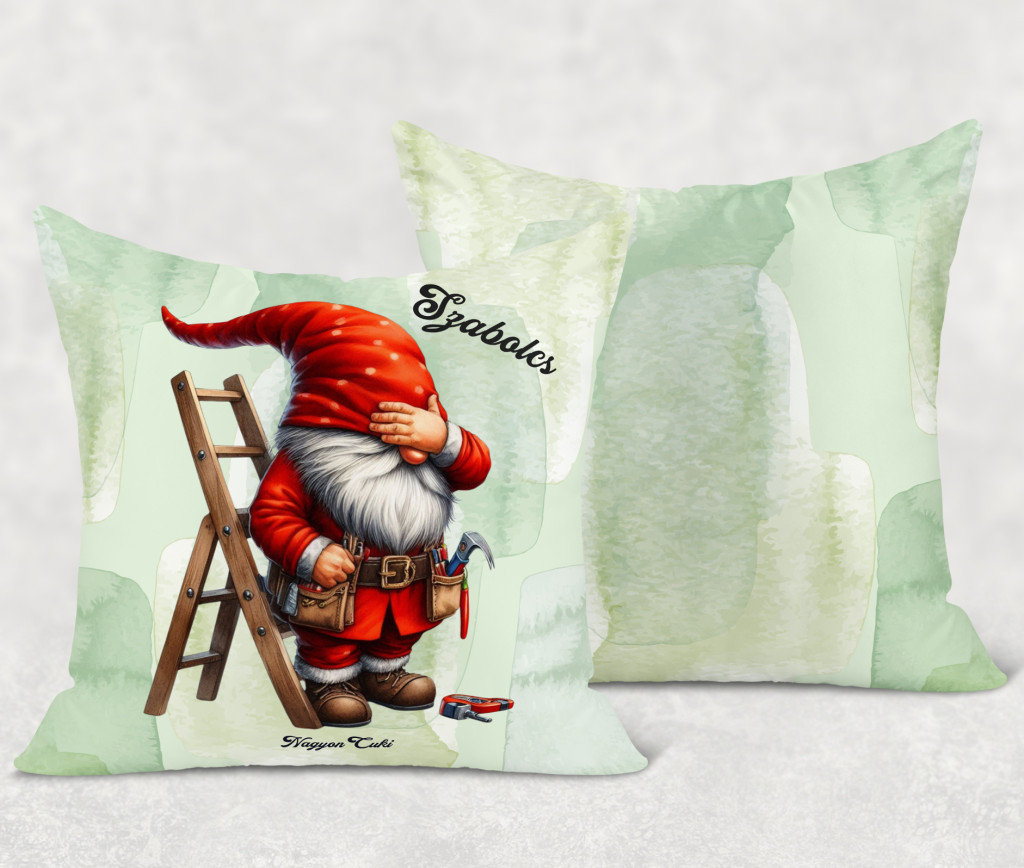 - Kétoldalas nyomtatás: A párna mindkét oldalán nyomat található, az egyik oldalon a cuki ezermester manó található, a másik oldalon pedig dizájnban passzoló nyomat.