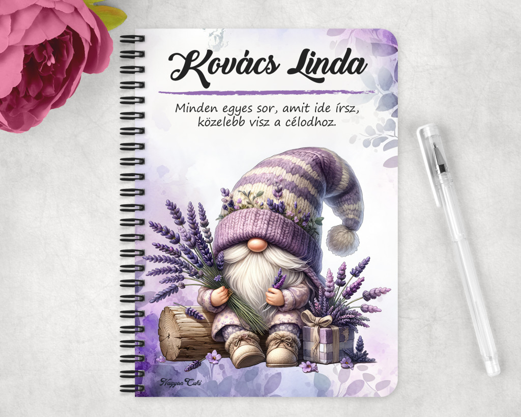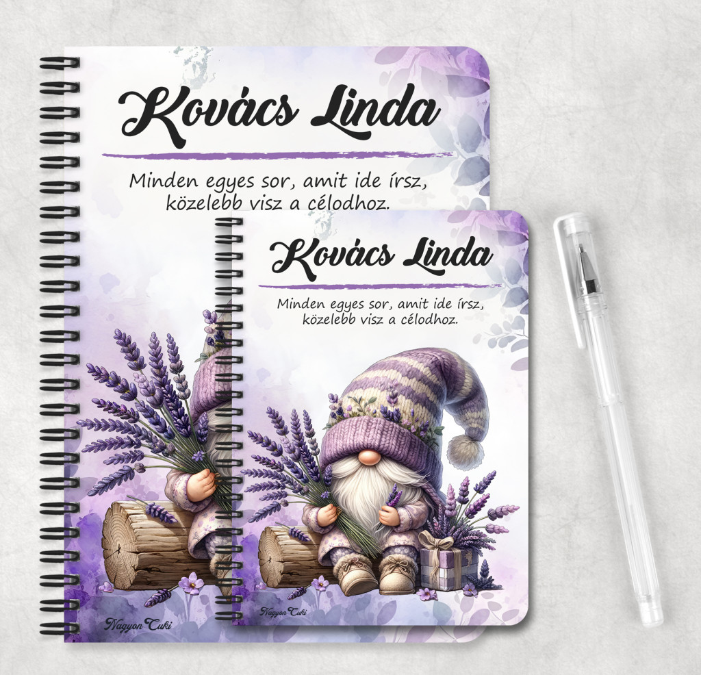 Rendeld meg most ezt a teljesen személyre szabható, egyedi manós füzetet, és vigyél egy csipetnyi levendulás nyugalmat a mindennapokba!