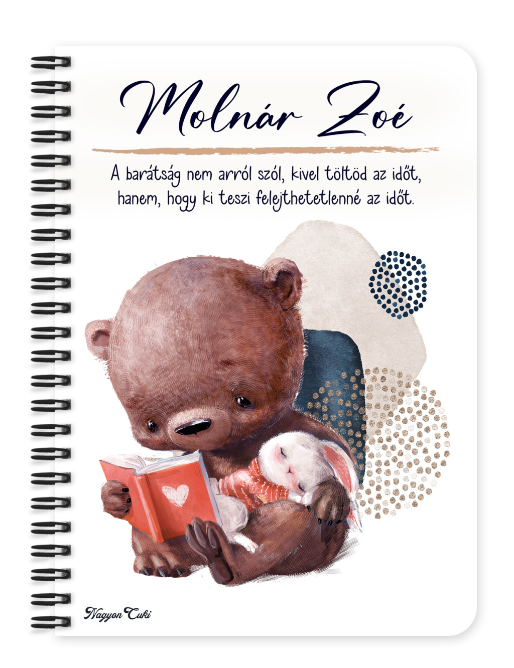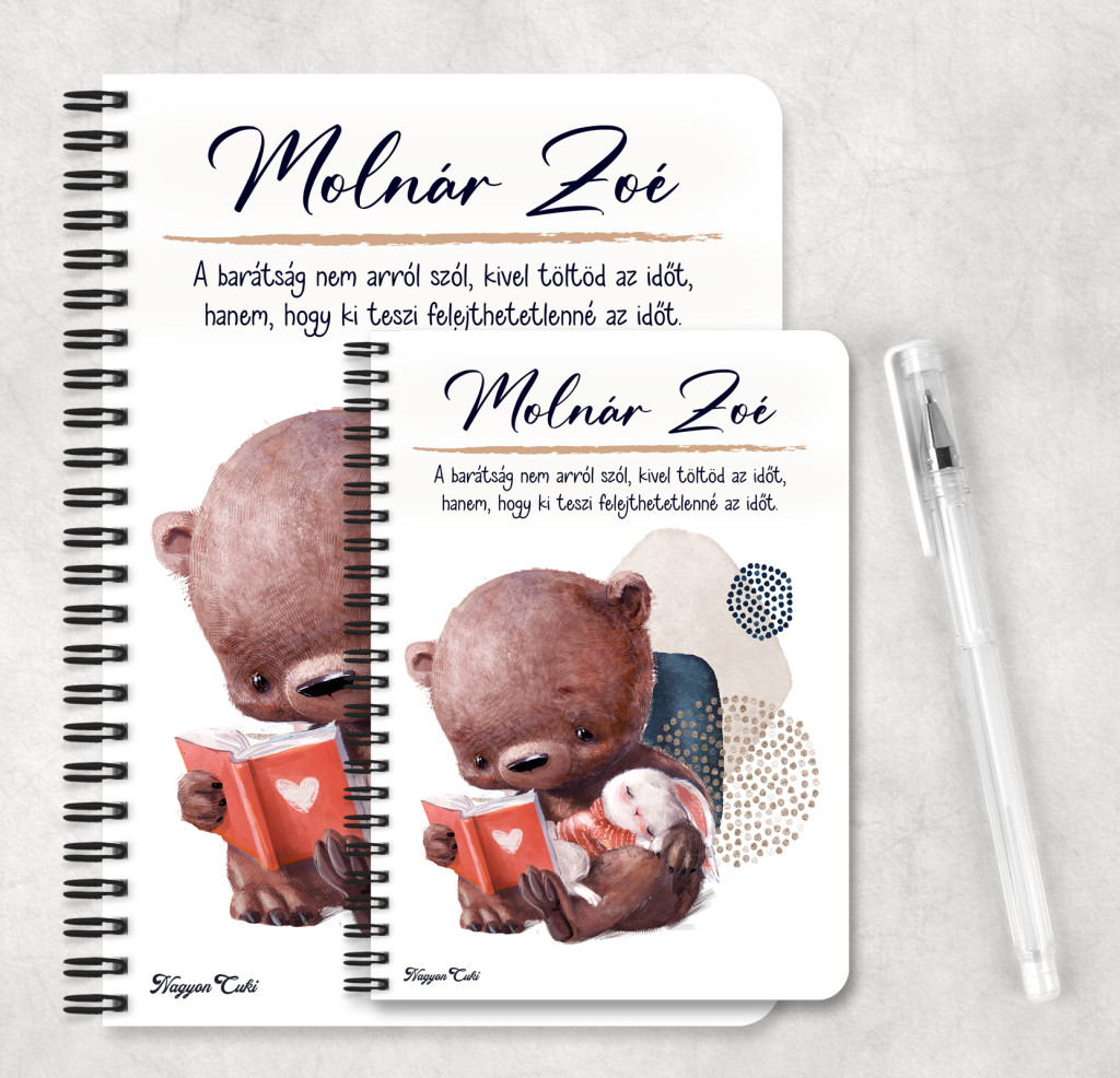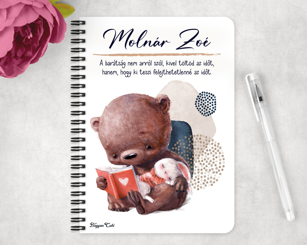 Névvel & Idézettel Kérhető Maci és nyuszi mintás Füzet | Egyedi Ajándék Könyvmolyoknak és barátoknak| nagyoncuki.hu