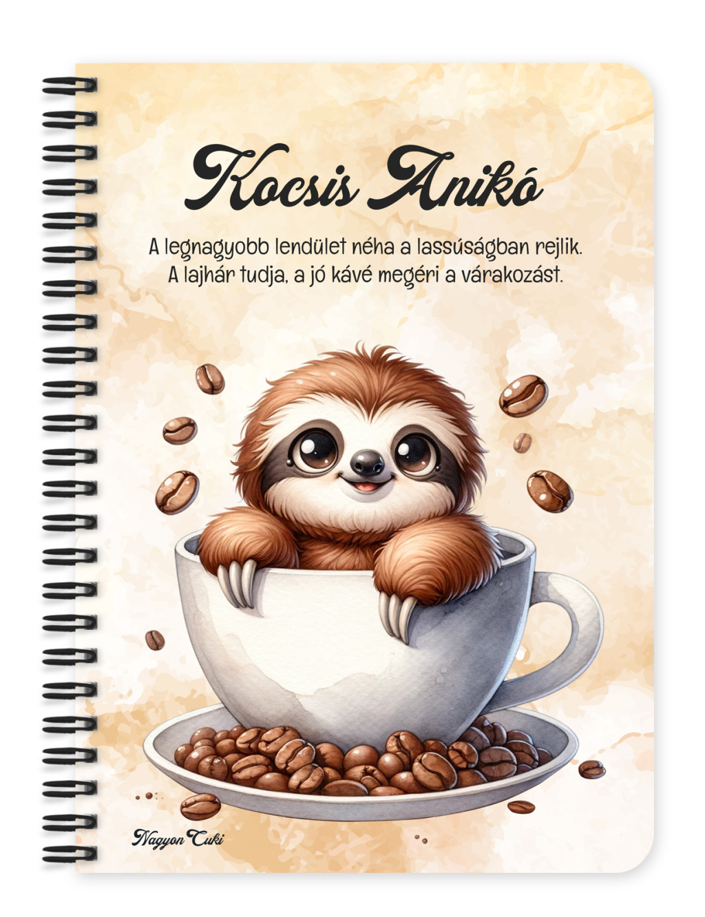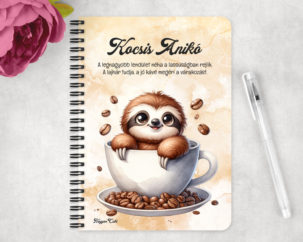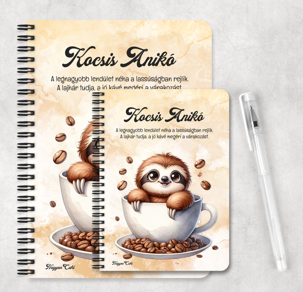 Névvel & Idézettel Kérhető Mosolygós Kávés lajhár mintás Füzet | Legjobb ajándék Nőknek & Személyes napló| nagyoncuki.hu