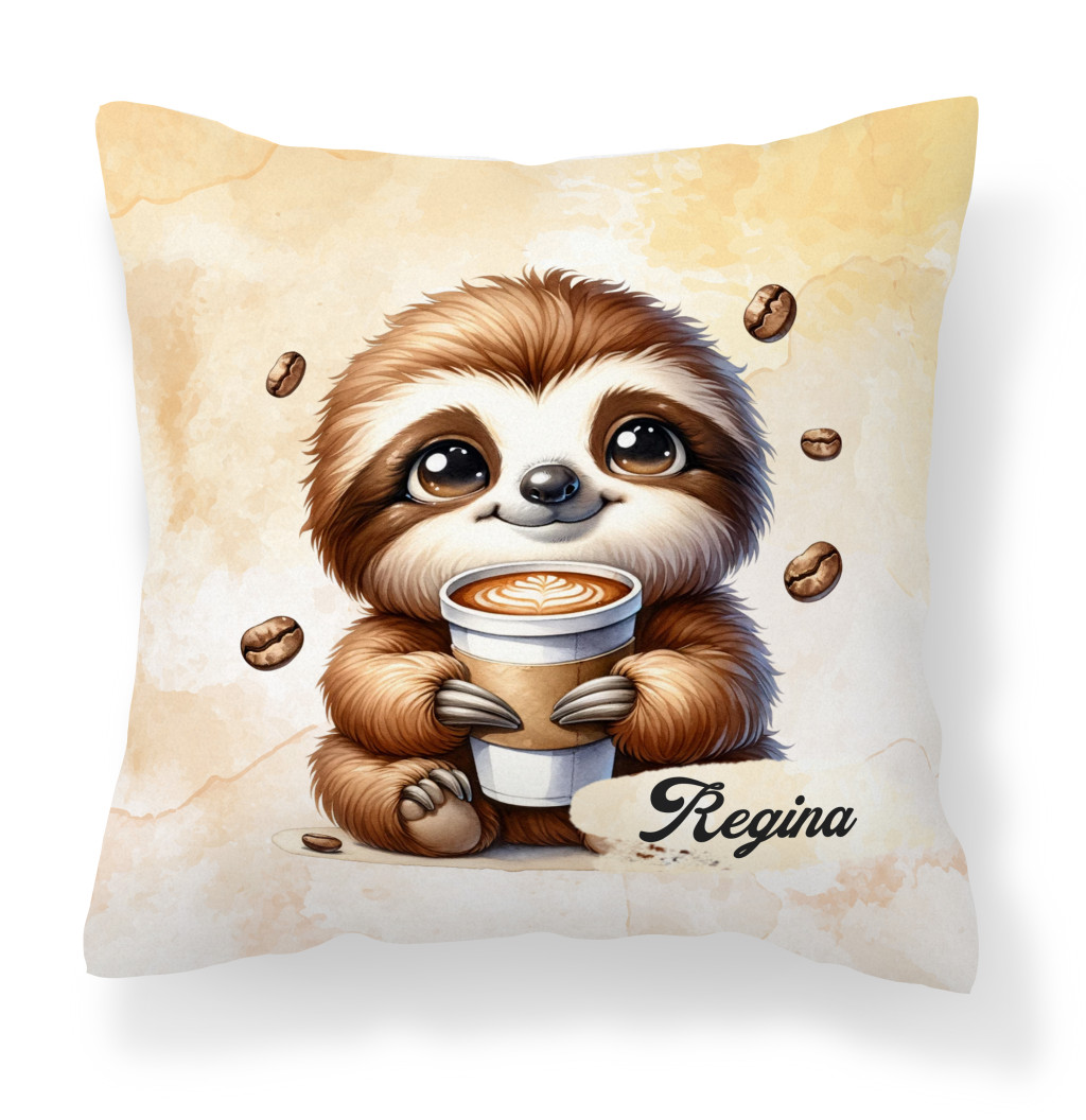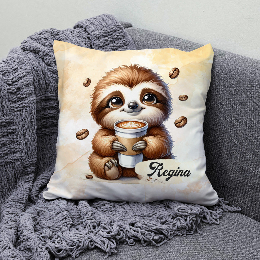 Névvel kérhető - Nagyon cuki Kávés lajhár mintás különleges és egyedi párna| A tökéletes ajándék Lajhár Rajongóknak | nagyoncuki.hu