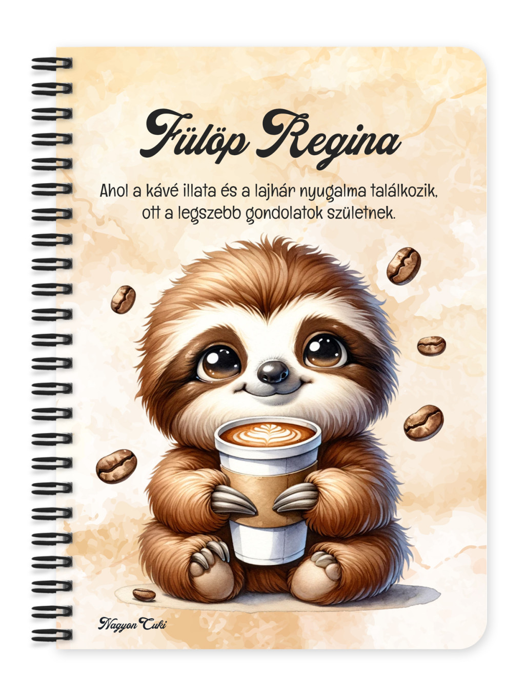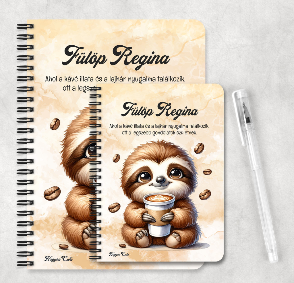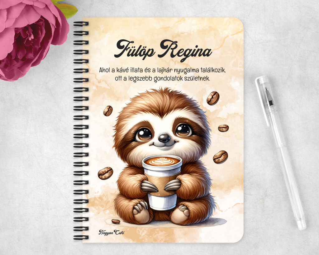 Névvel & Idézettel Kérhető Nagyon cuki Kávés lajhár mintás Füzet | Legjobb ajándék Nőknek & Személyes napló| nagyoncuki.hu