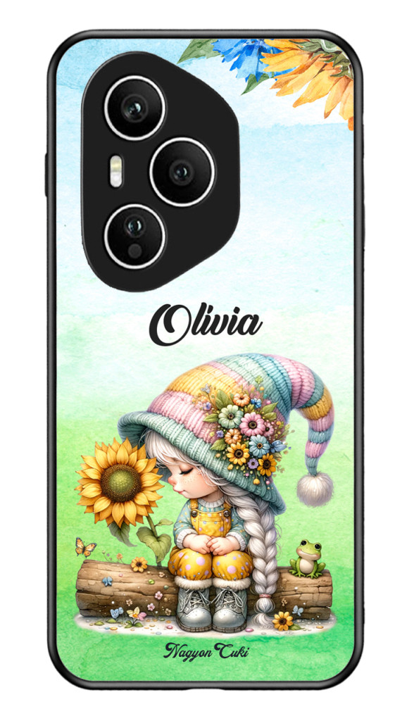 Névvel kérhető Napraforgós manó lány cuki békával mintás Honor szilikon telefontok | Ajándék ötletek Nőknek| nagyoncuki.hu