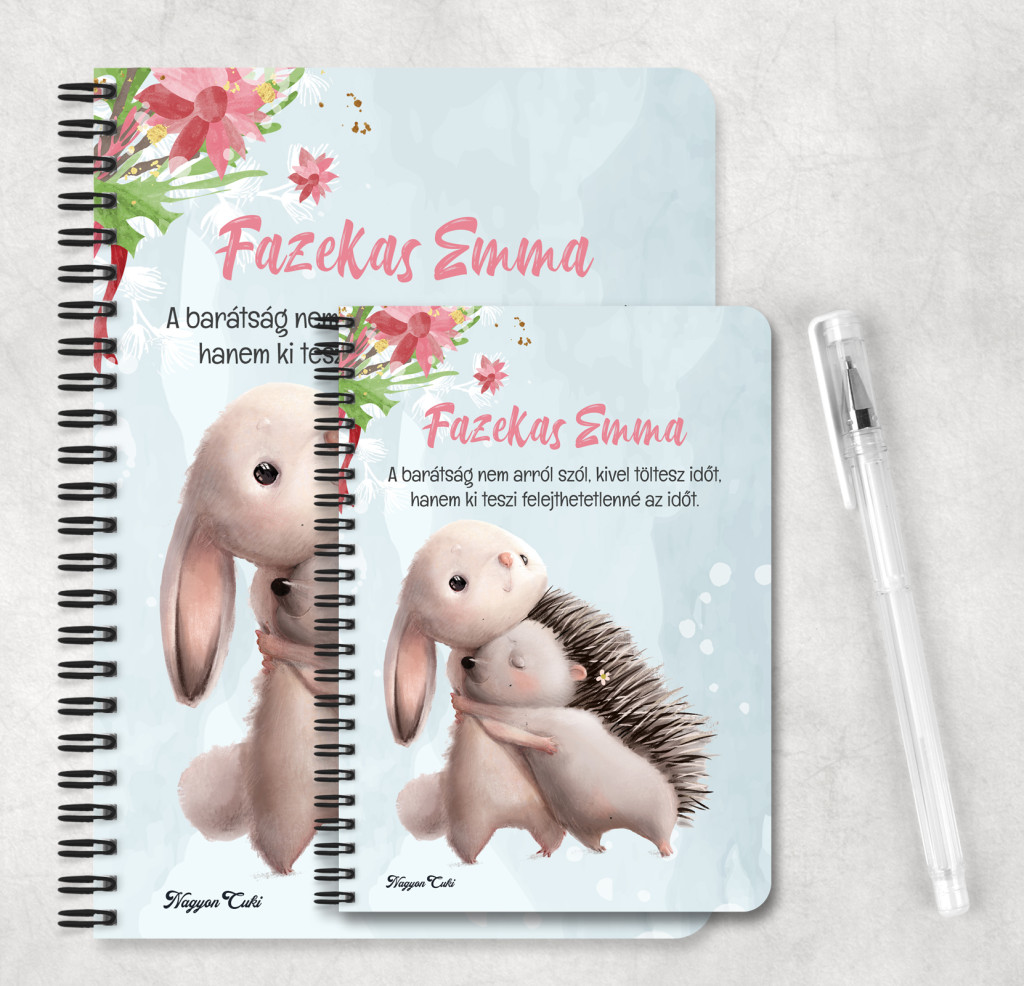 Névvel & Idézettel Kérhető Nyuszi és Süni mintás Füzet | Egyedi Ajándék Nőknek & Személyes napló barátoknak| nagyoncuki.hu