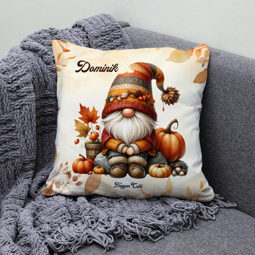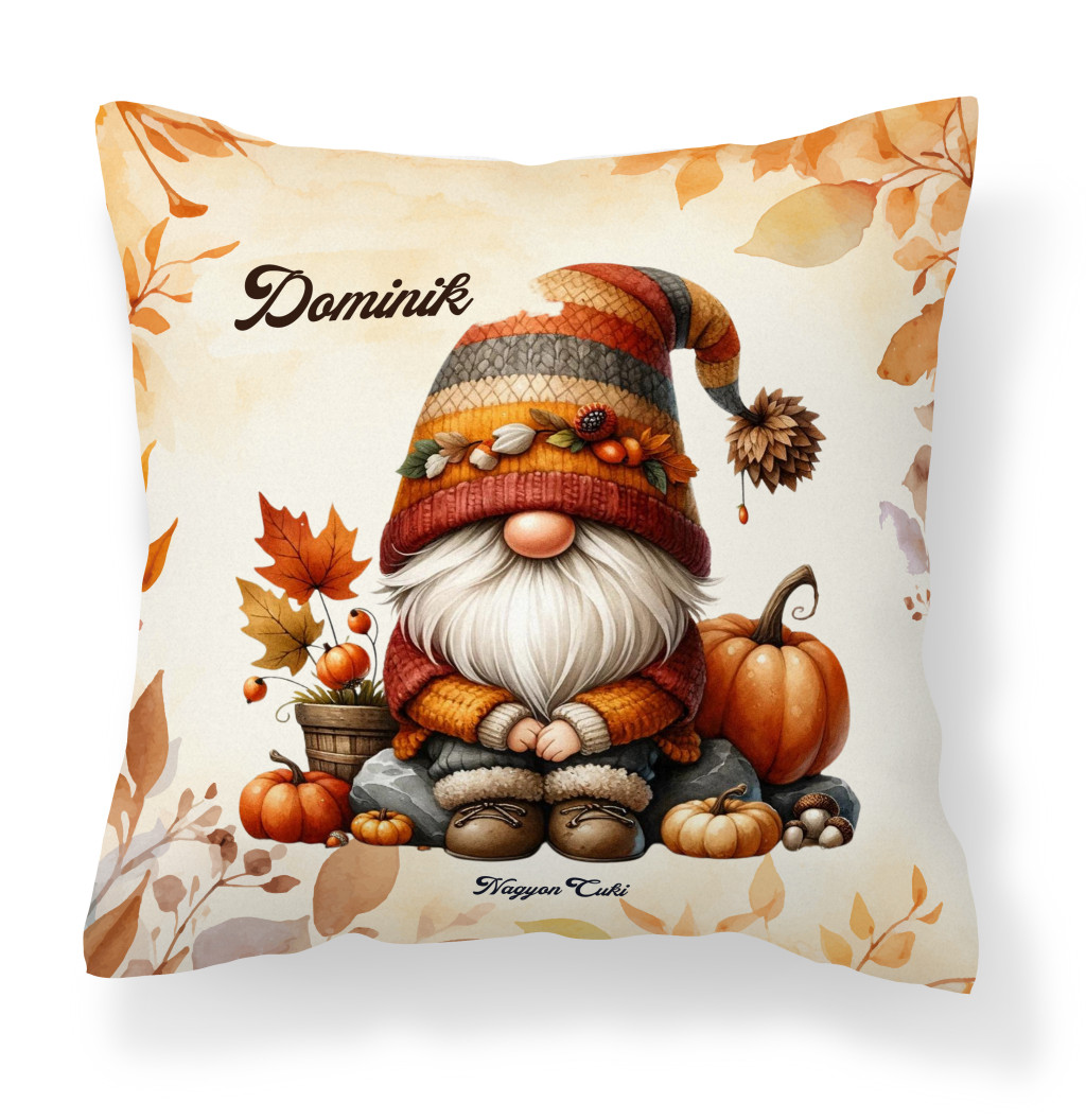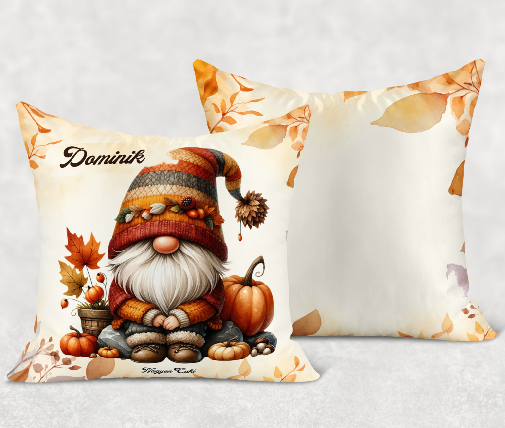 Névvel kérhető - Őszi manó és a tök mintás különleges és egyedi párna | A legcukibb ajándék kicsiknek és nagyoknak | nagyoncuki.hu