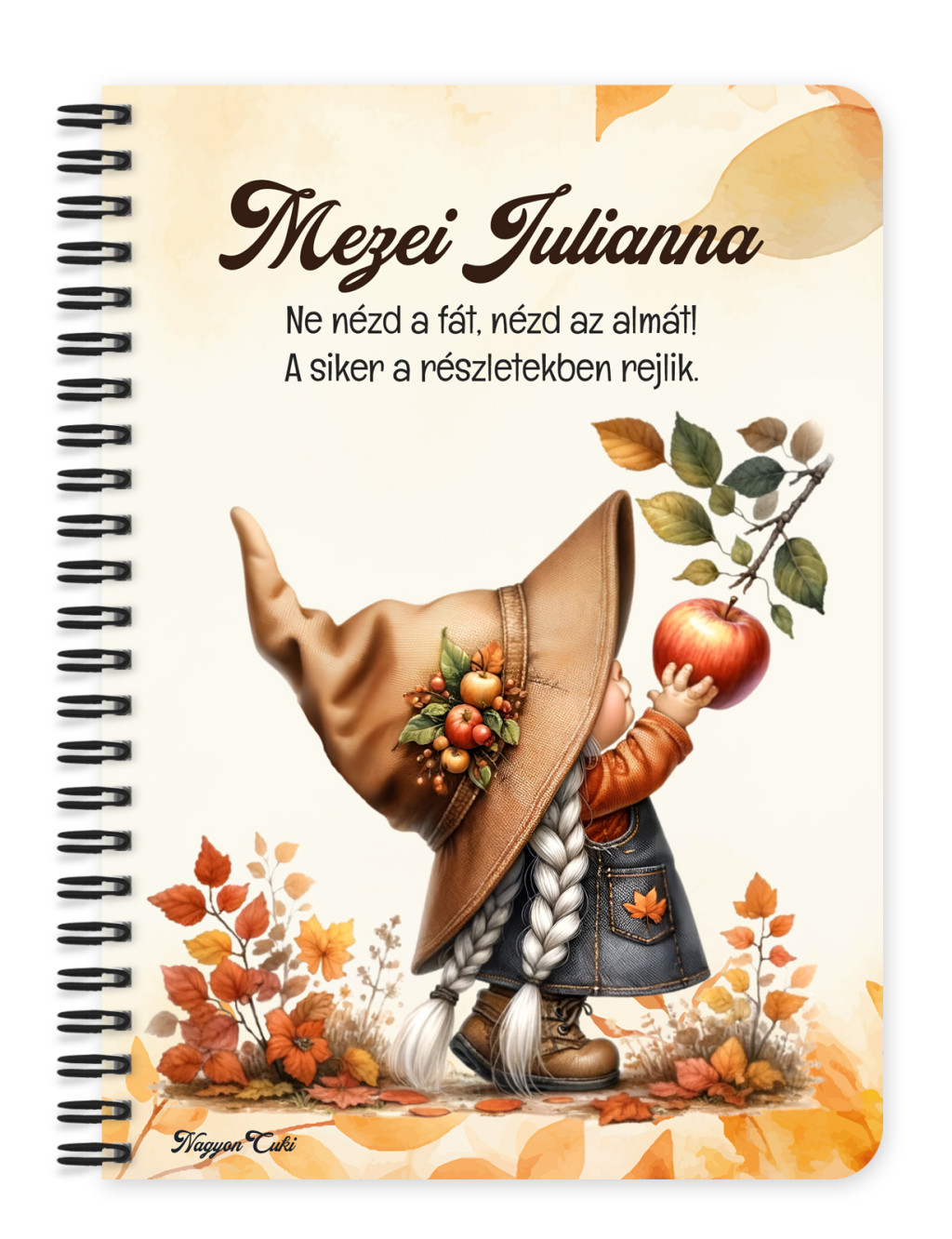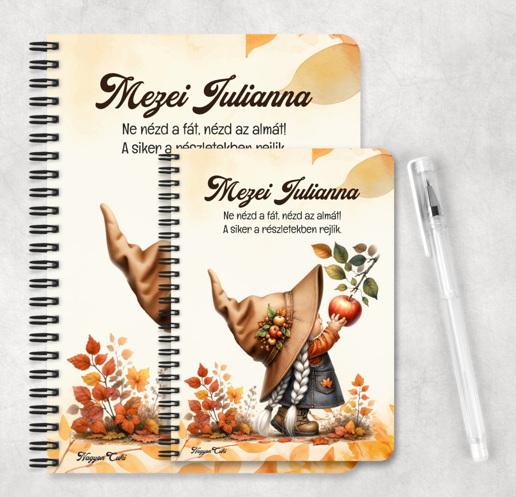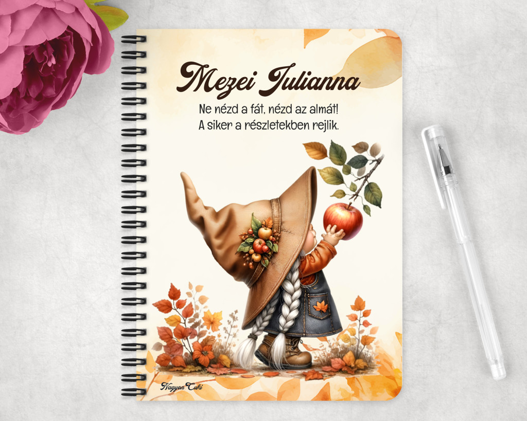 Személyre szabható - Őszi manó lány és az alma mintás füzet mintás Füzet | Egyedi Ajándék Nőknek & Személyes Napló | nagyoncuki.hu