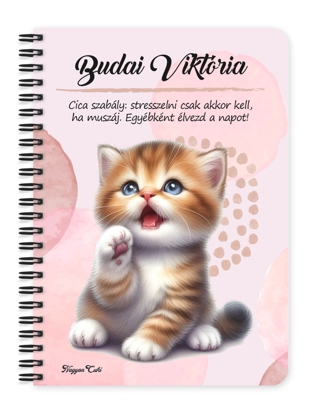 Rendeld meg most ezt a teljesen személyre szabható, egyedi cicafüzetet, és indítsd a napot egy dorombolásnyi jókedvvel...mert mindenkinek jár egy kis cukiság.