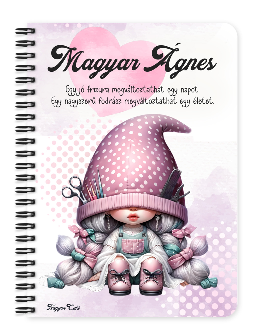 Névvel & Idézettel Kérhető Pöttyös sapkás fodrász manólány mintás Füzet | Egyedi Ajándék Fodrásznak | nagyoncuki.hu