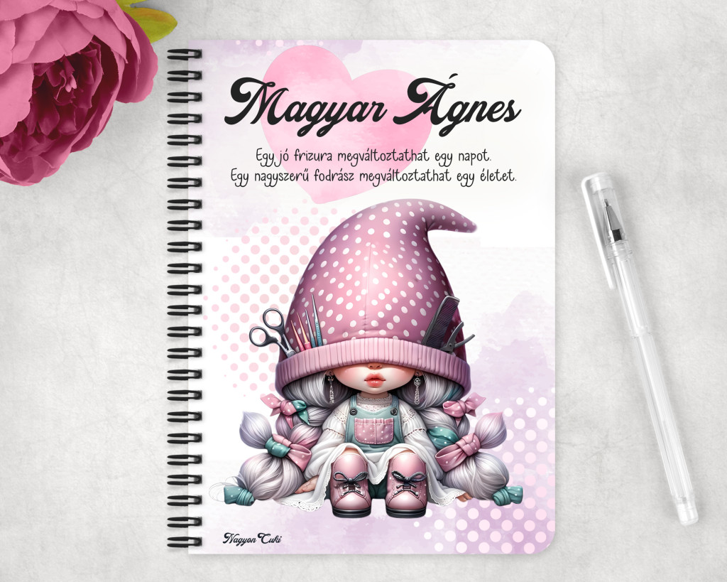 Miért válaszd ezt a névre szóló aranyos fodrász manós füzetet?