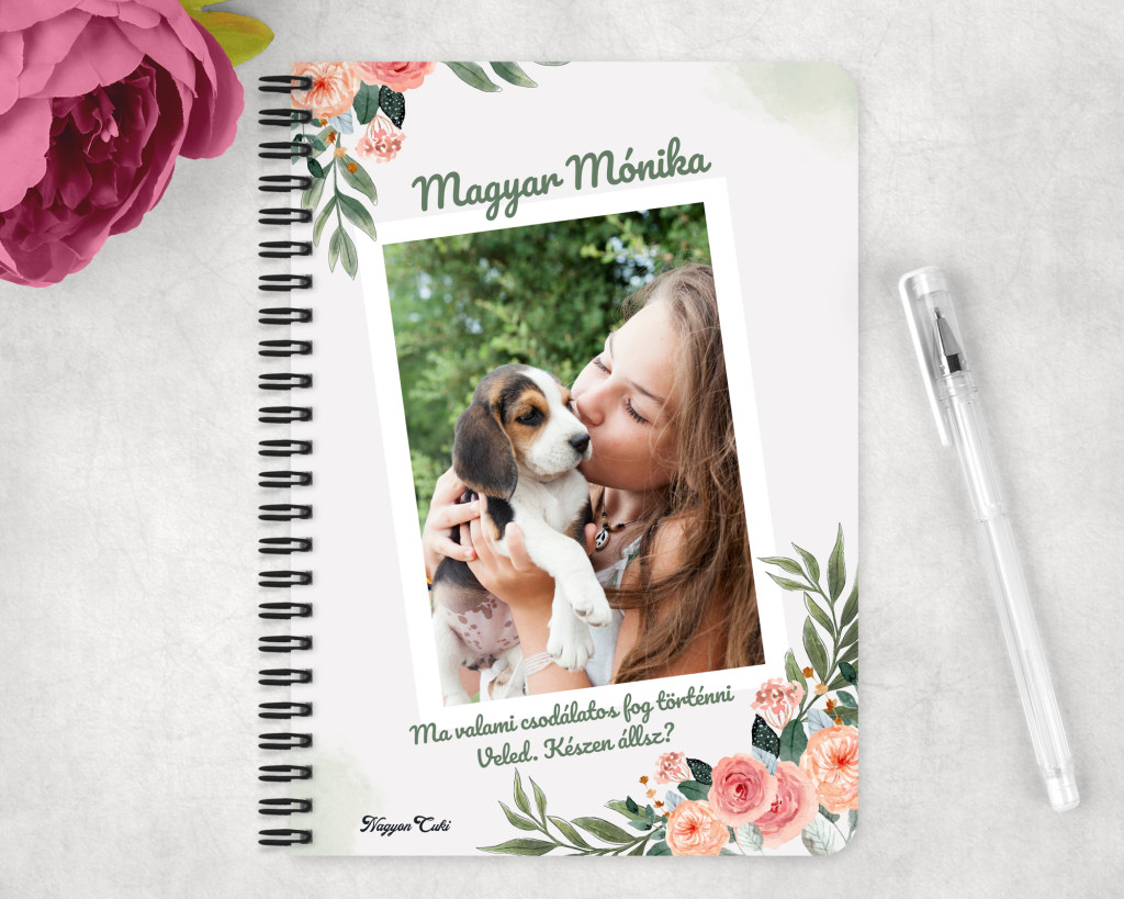 Lepd meg a kedvenc hölgyet vagy saját magadat ezzel a bájos és személyre szabott, fényképes füzettel! Rendeld meg most ezt az egyedi ajándékot, és vigyél egy kis virágos bájt a mindennapokba.