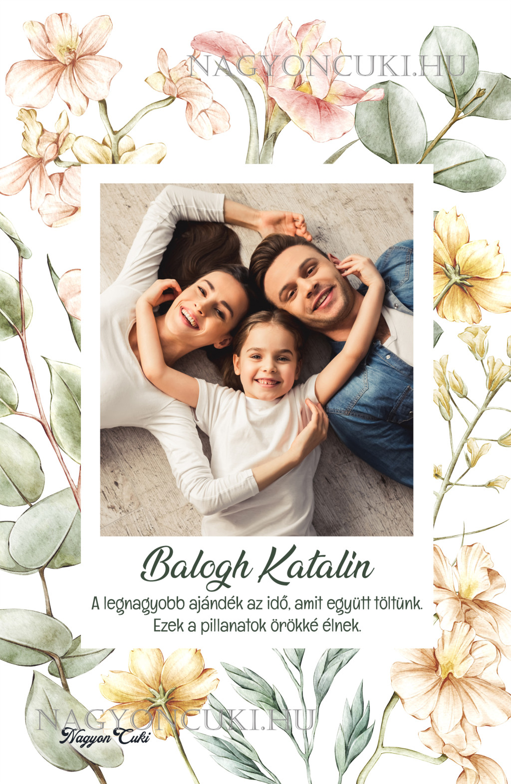 A füzet borítóját gyönyörű akvarell virágos dizájn díszíti, amely egy gyönyörű keretet alkot a fotód számára. Nem kell grafikusnak lenned: te adod a profi fotót, mi pedig a varázslatos körítést, hogy a végeredmény egy igazán egyedi és megható ajándék legyen.