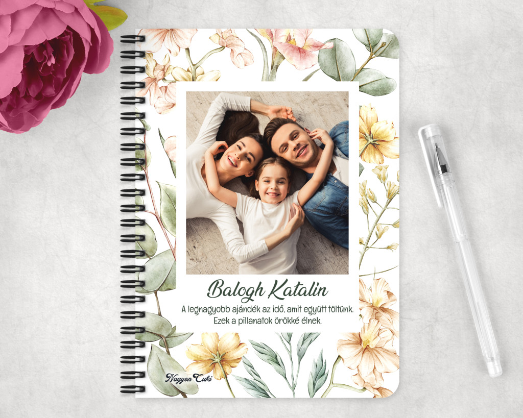 Lepd meg a kedvenc hölgyet vagy saját magadat ezzel a bájos és személyre szabott, fényképes füzettel! Rendeld meg most ezt az egyedi ajándékot, és vigyél egy kis virágos bájt a mindennapokba.
