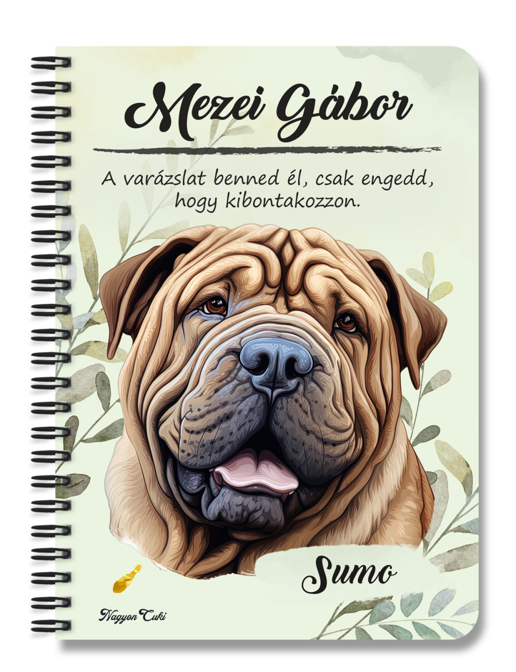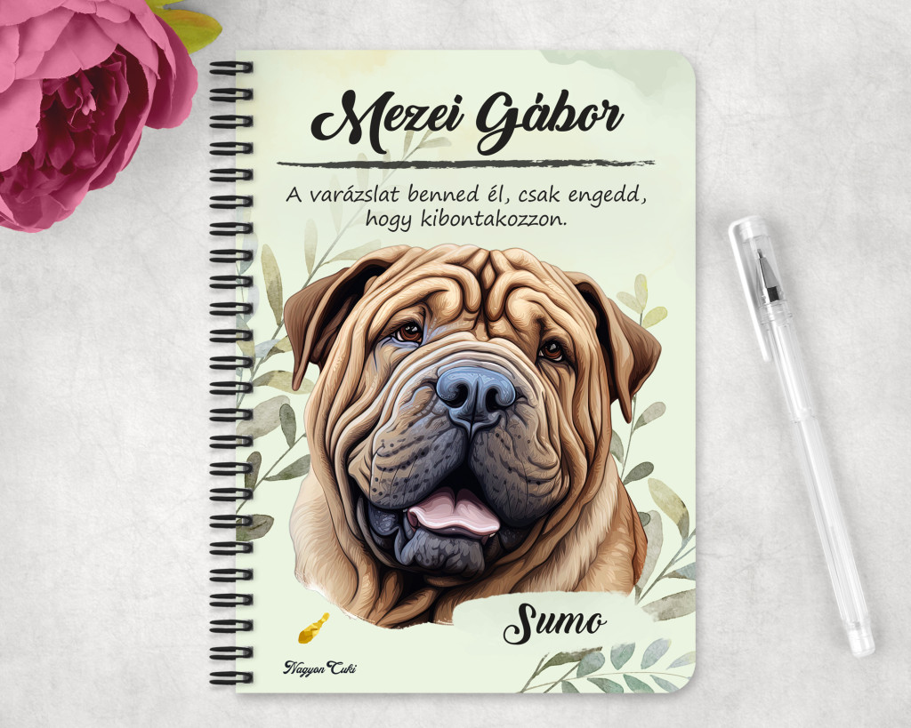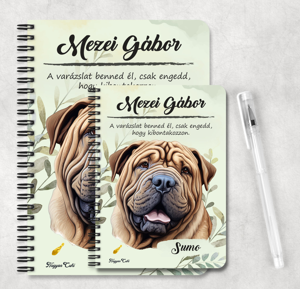 Névvel & Idézettel Kérhető - Sharpei portré kutyás Füzet | Egyedi Ajándék Kutyásoknak & Személyre Szabható Kutyás Ajándék | nagyoncuki.h