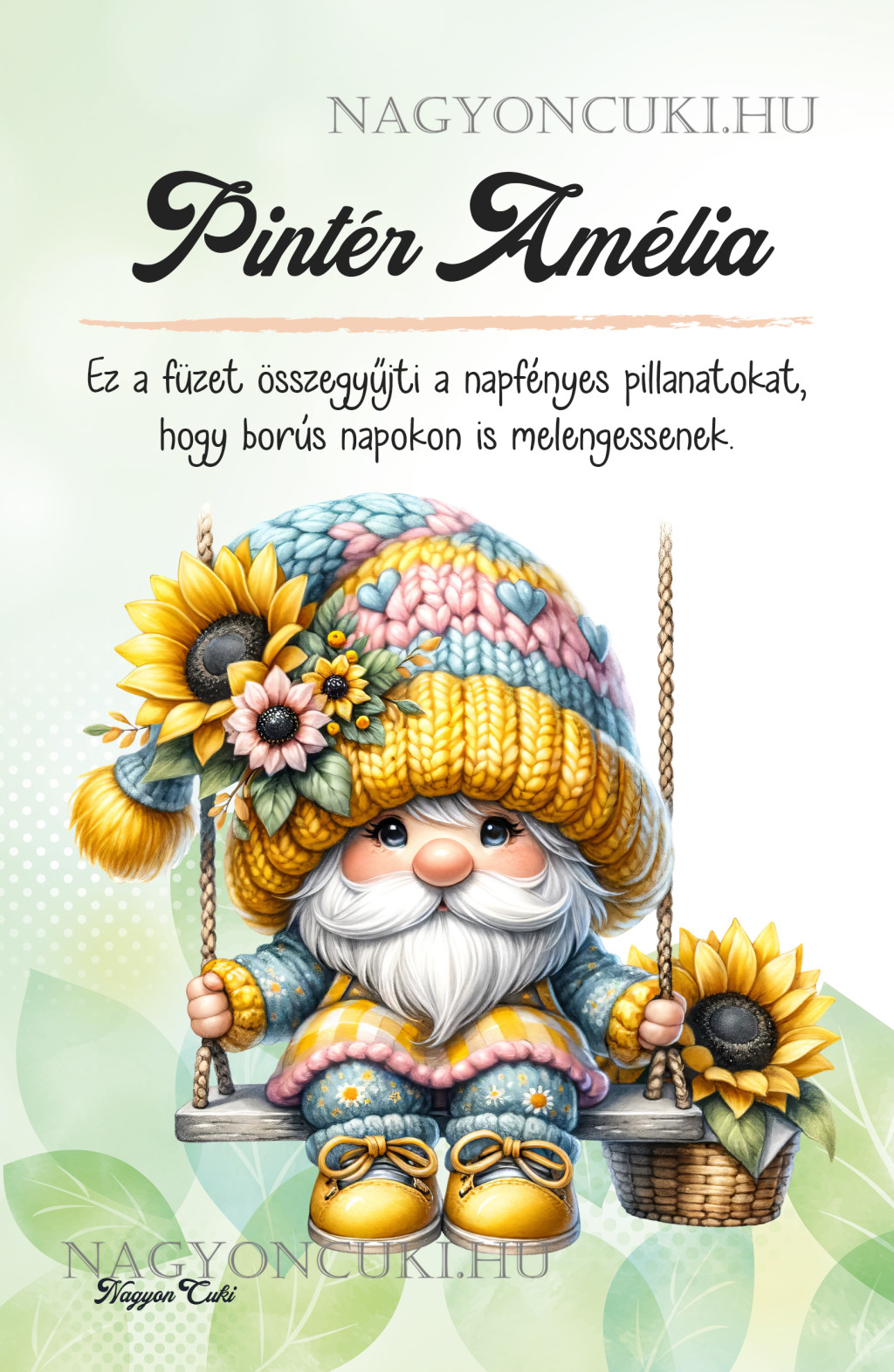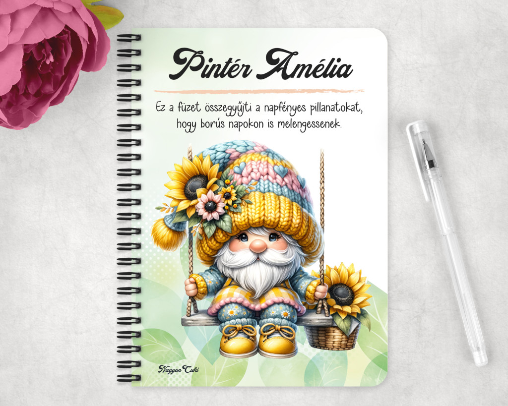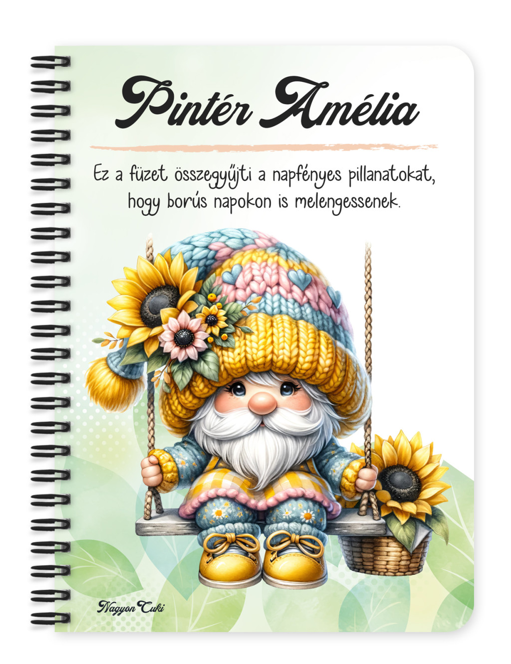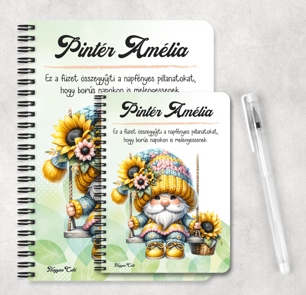Névvel & Idézettel Kérhető Szép szemű hintázó napraforgós manó mintás Füzet | Legjobb ajándék Nőknek | nagyoncuki.hu