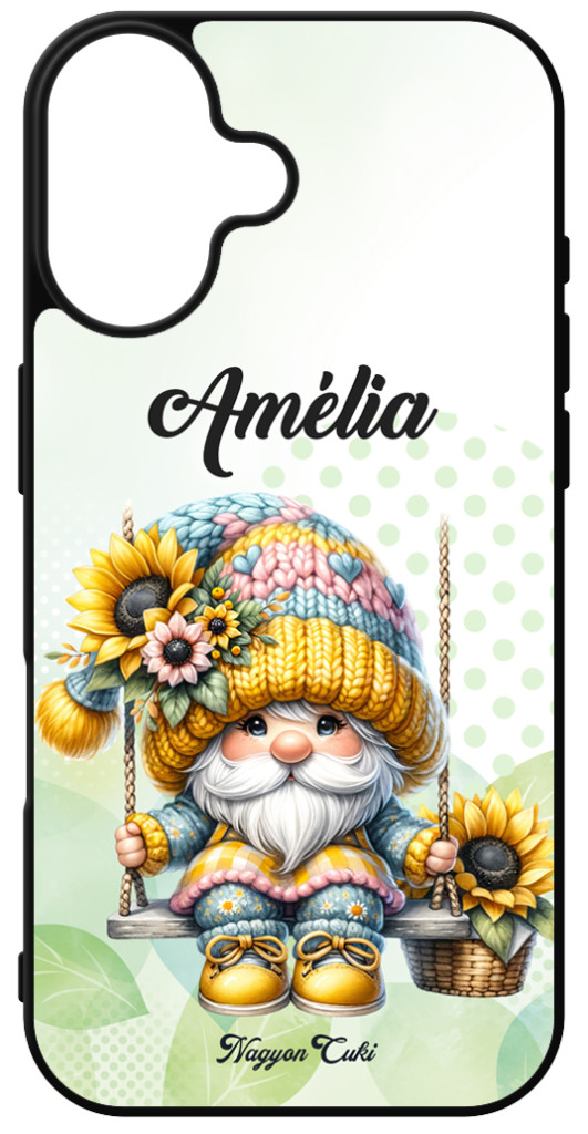 Névvel kérhető Szép szemű hintázó napraforgós manó mintás iPhone szilikon telefontok | Ajándék ötletek Nőknek| nagyoncuki.hu